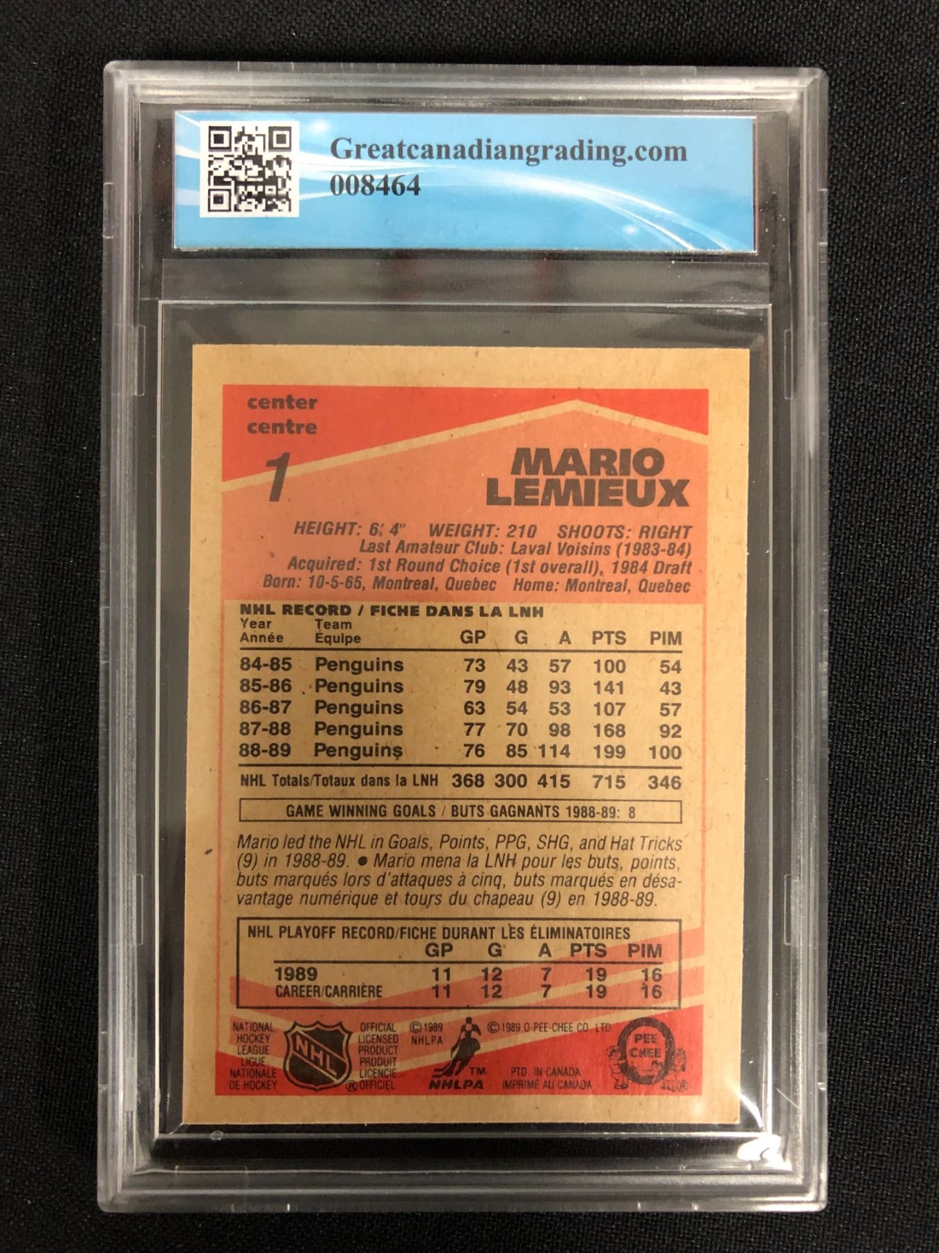 1989-90 O-PEE-CHEE NO. 1 MARIO LEMIEUX (GCG 8.5)
