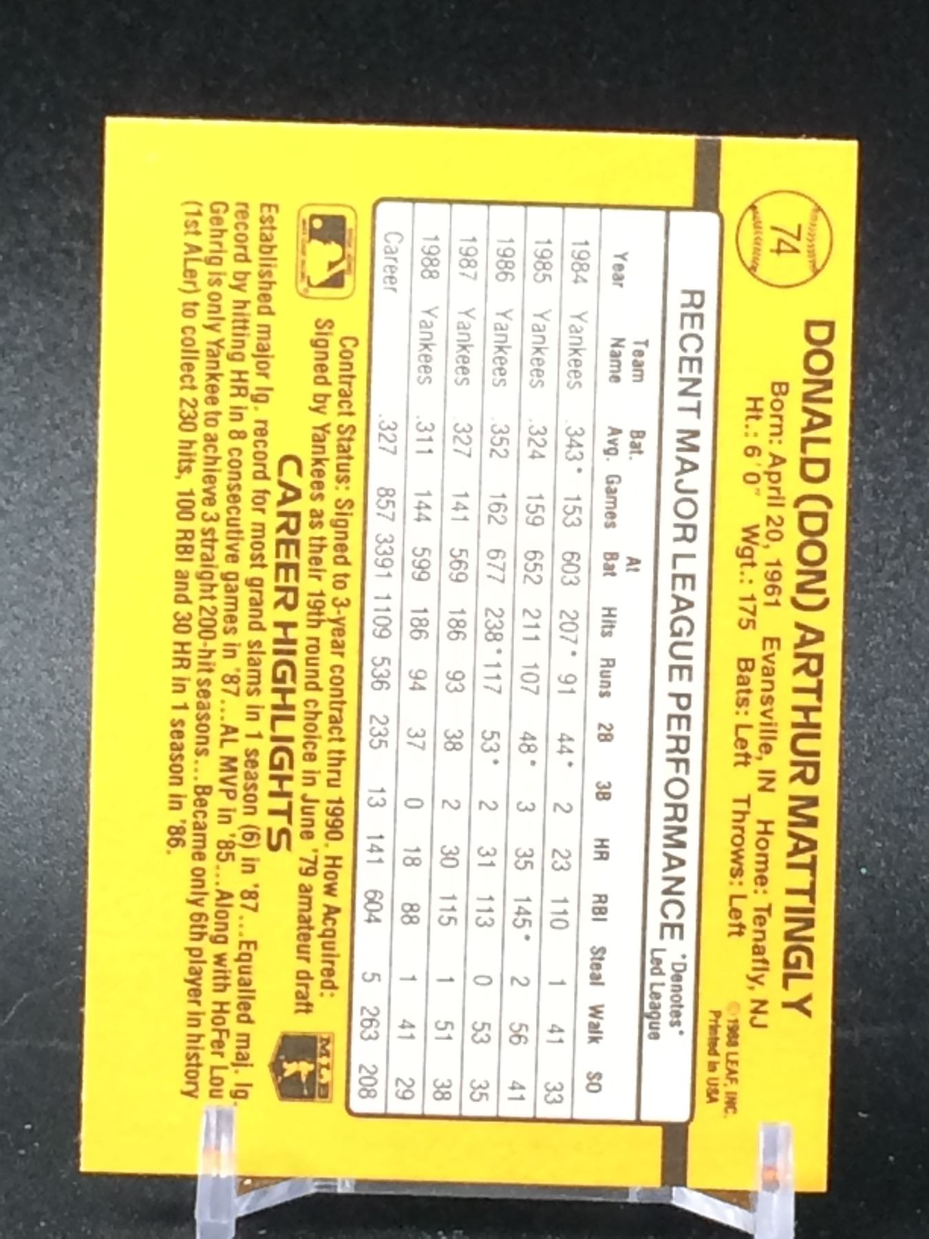 1989 DONRUSS DON MATTINGLY