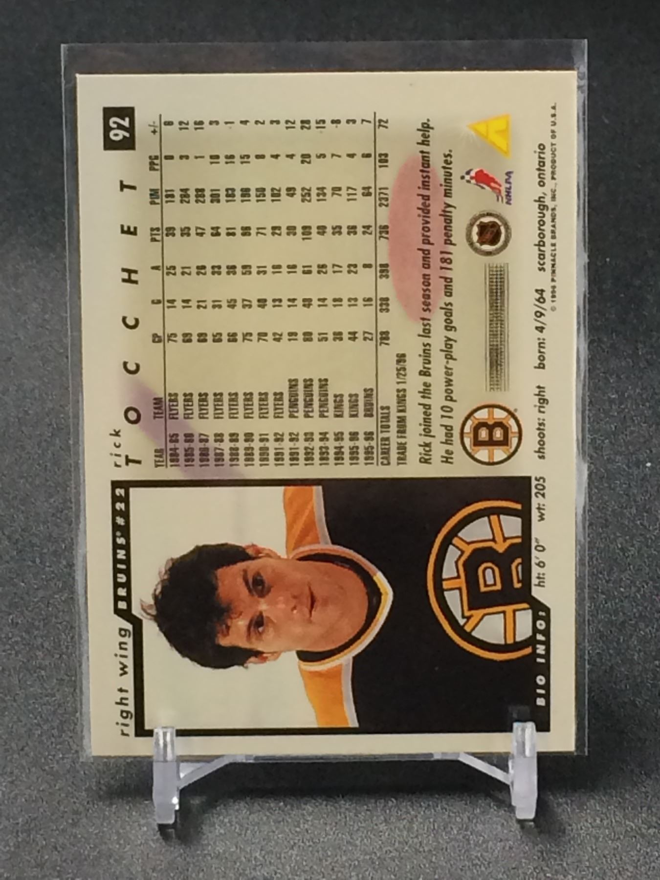 1989 PINNACLE RICK TOCCHET SIGNED HOCKEY CARD
