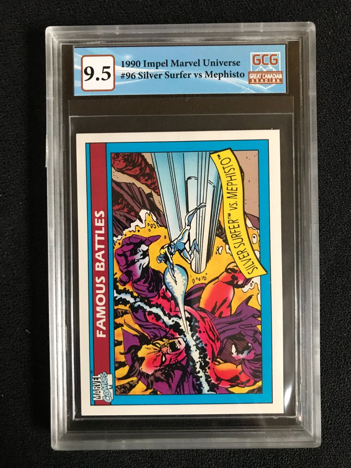 1990 IMPEL MARVEL UNIVERSE NO. 96 SILVER SURFER VS MEPHISTO (GCG 9.5)