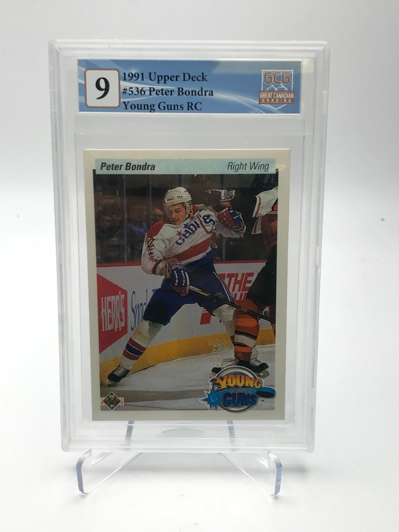 1991 UPPER DECK NO.536 PETER BONDRA YOUNG GUNS ROOKIE CARD GCG GRADED 9