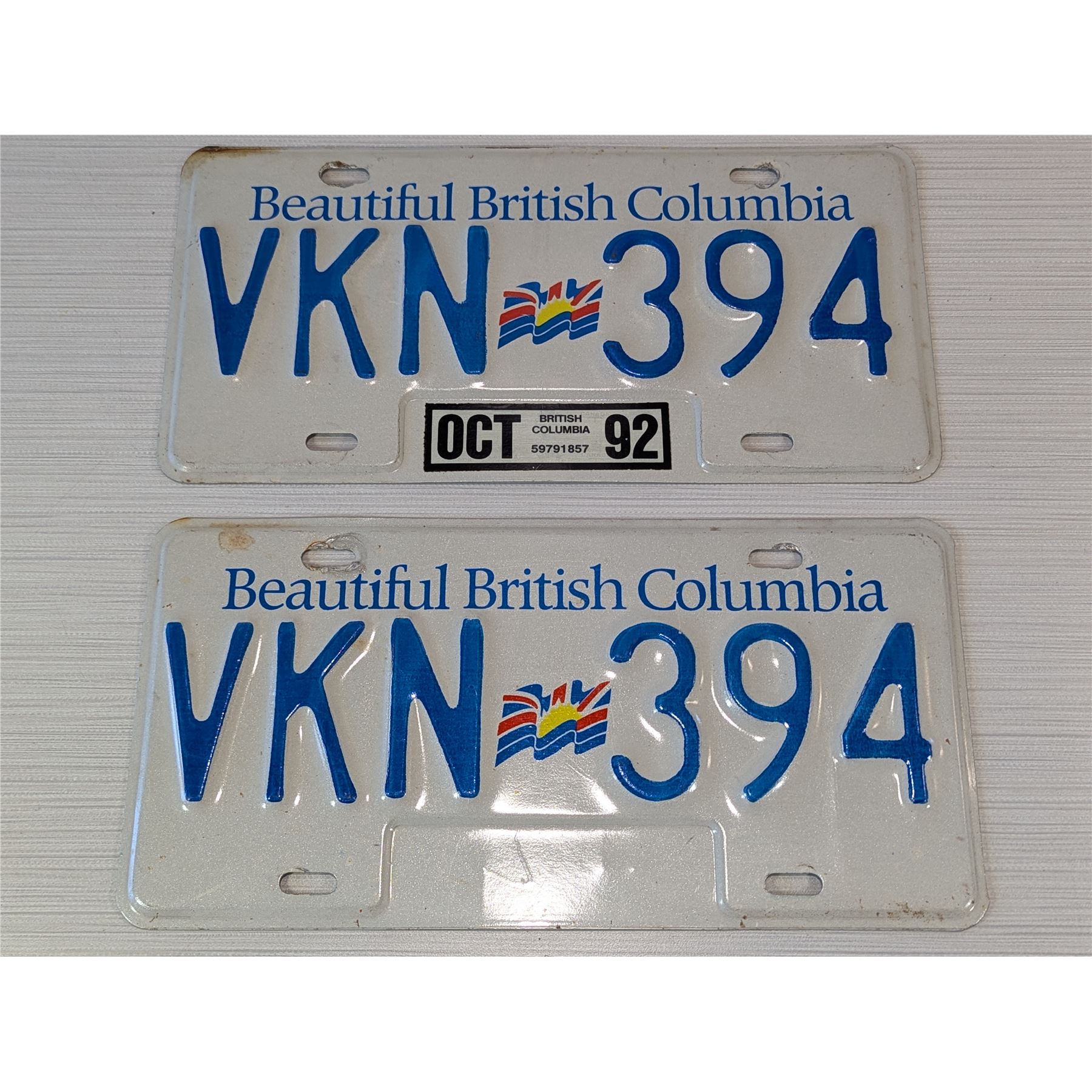 1992 BRITISH COLUMBIA LICENSE PLATES