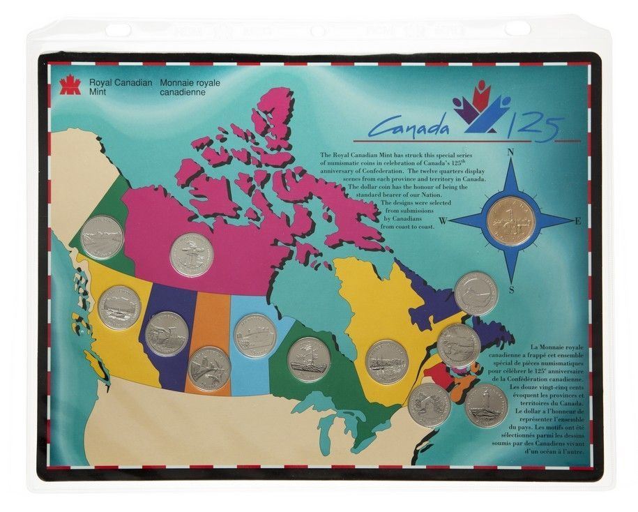 1992 Canada 125th Coin Set Includes 12 Provincial Quarters & Parliament Loonie 125th Anniversary