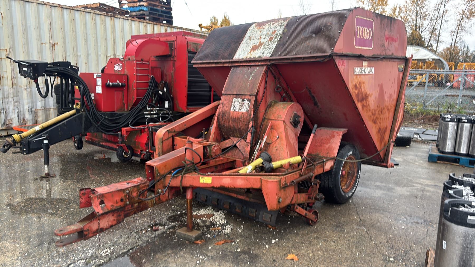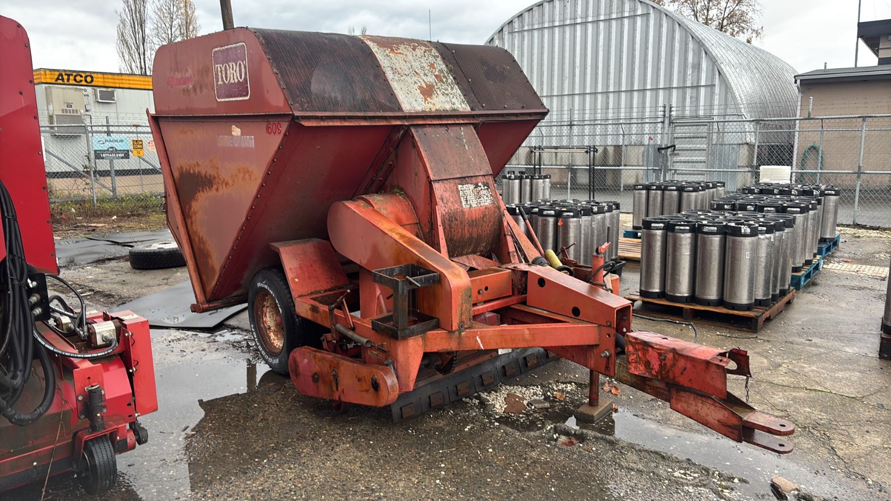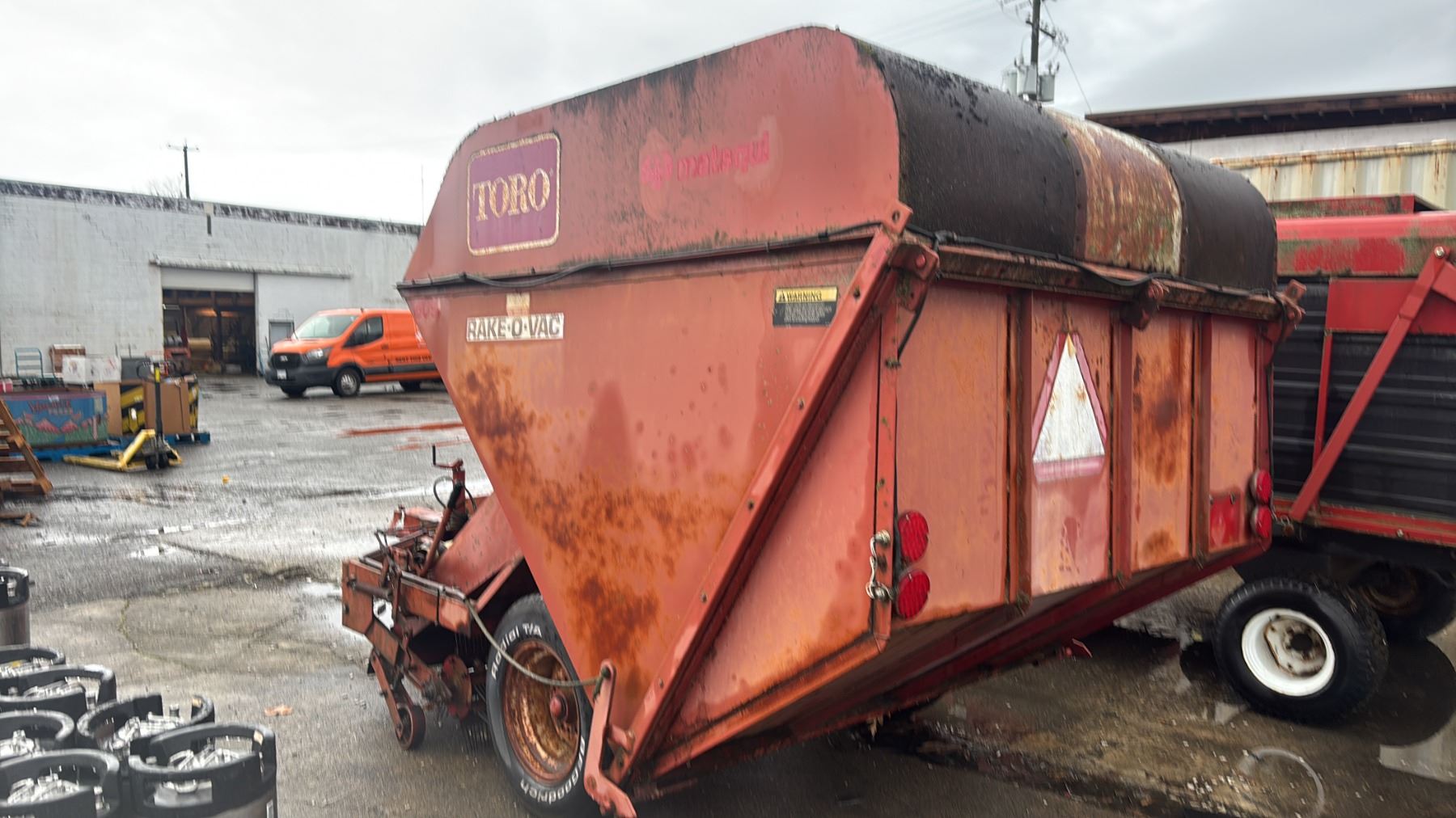 1993 TORO RAKE-O-VAC, RED, VIN 0717430143, HOURS (NOT VERIFIED), HAS REGISTRATION, PIN HOOK, FEATURES: RUBBER TIRES, HISTORY: X-CITY, RAKE-O-VAC, SINGLE AXLE, DRIVESHAFT ISSUE, NEEDS REPAIR *MUST TOW*