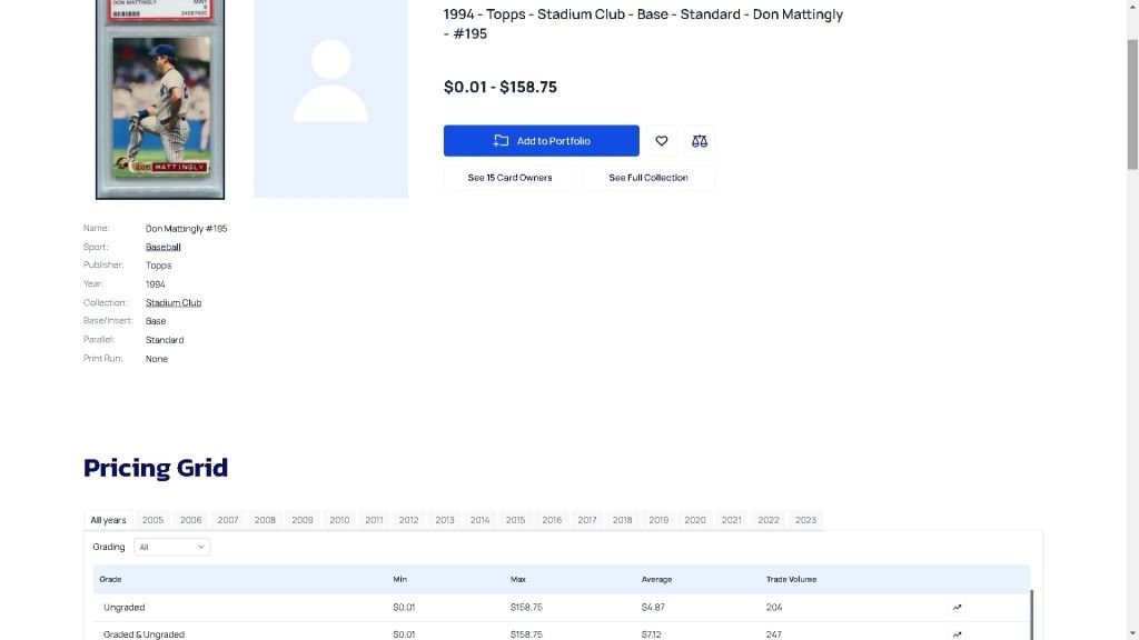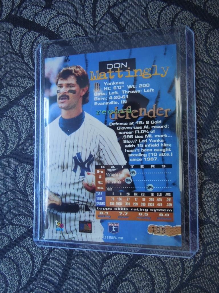 1994 TOPPS STADIUM CLUB #195 DON MATTINGLY NEW YORK YANKEES (RETAIL $150)