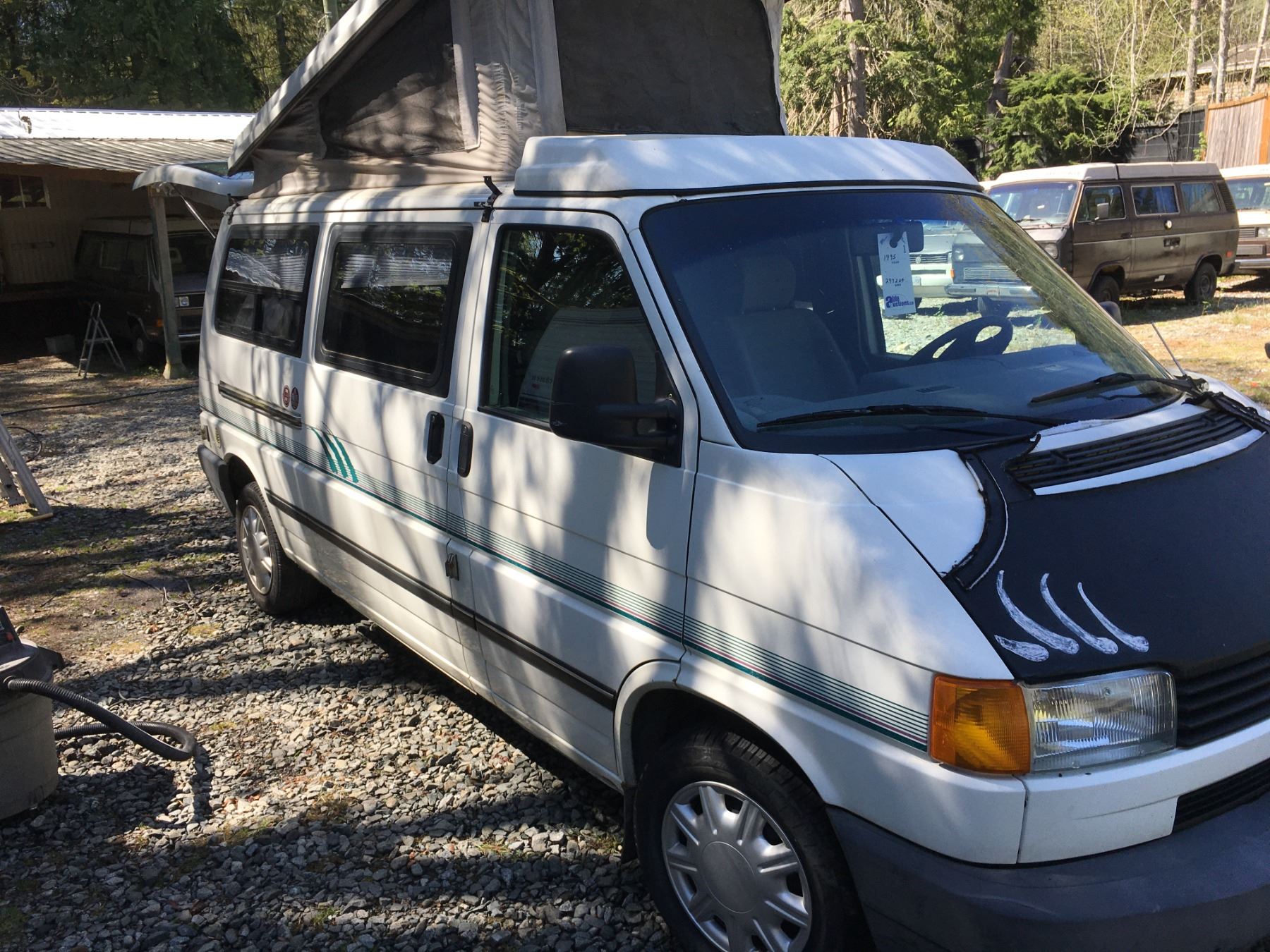 1995 VW EUROVAN CAMPER VIN # WV2EE0702SH074216, WHITE, 297204KM, AUTOMATIC RD/CR/PW/CC/PL/AC, EXTENDED WHEEL BASE, WINNEBAGO INTERIOR, SLEEPS 4, HAS FURNACE, (NAMED DAISY) REAR LEFT HAS DENT, NO LIENS, DECLARATIONS $6,513.64 - *NANAIMO*