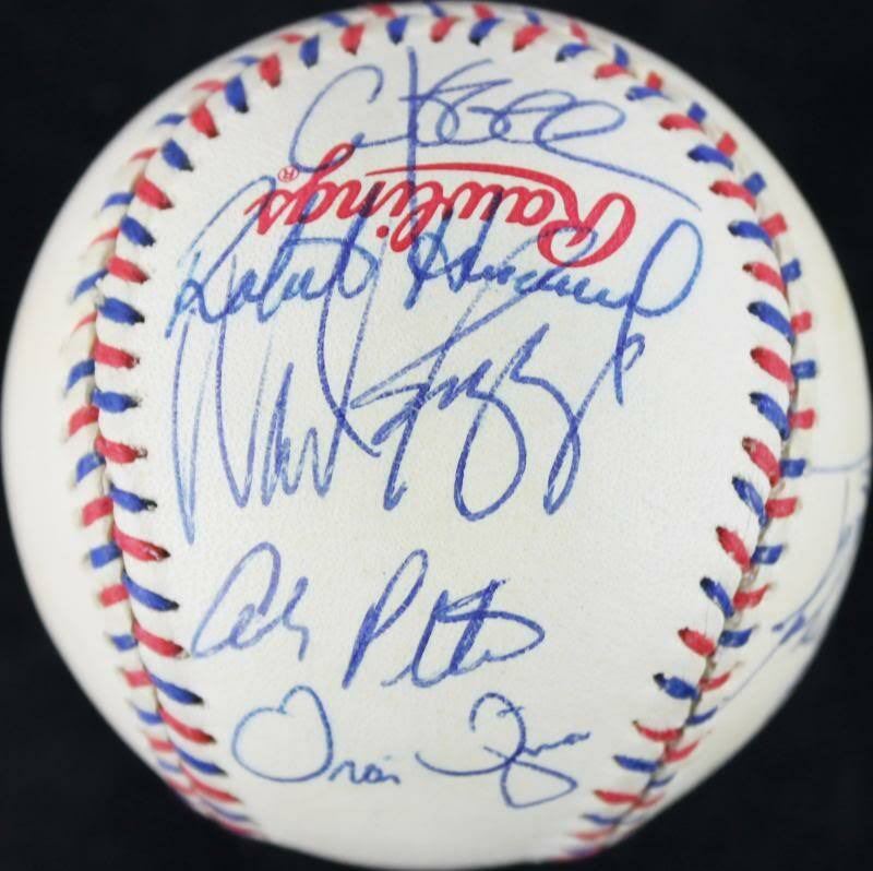 This 1996 AMERICAN LEAGUE ALL STARS (9) SIGNED OML 96 ALL STAR GAME BASEBALL THOMAS PETTITTE PSA/DNA #U03048 has been certified authentic. Notable signatures include Wade Boggs, Frank Thomas, Andy Pettitte, John Wetteland & Roberto Hernandez. It will include the PSA/DNA numbered hologram and matching Certificate of Authenticity.