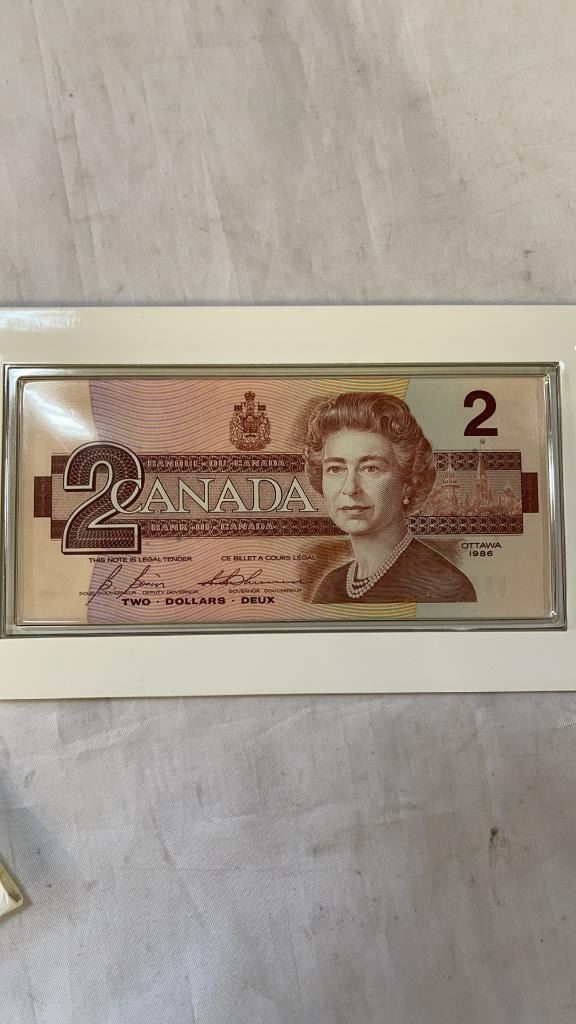 1996 CANADIAN UNCIRCULATED 2 DOLLAR COIN AND BANK NOTE SET