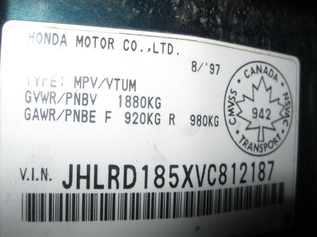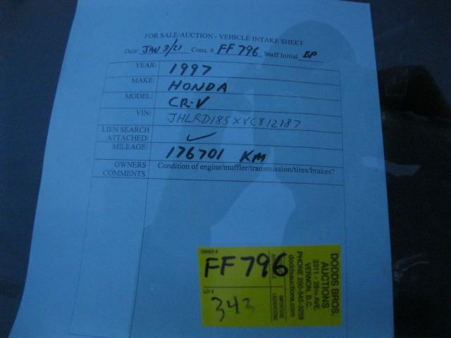 1997 HONDA CRV SUV - VIN JHLRD185XVC812187 - 176,701 KM