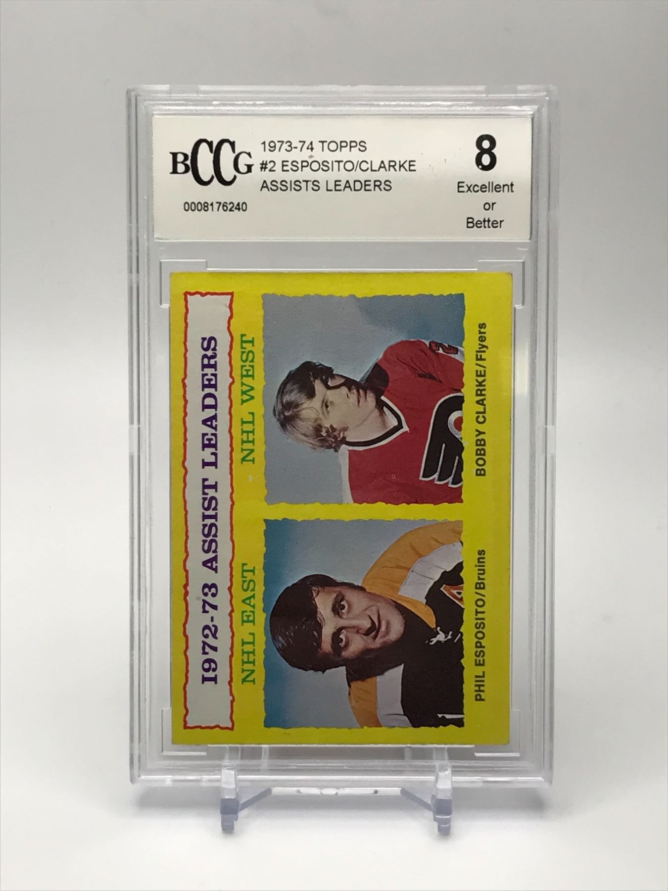 19973-74 TOPPS ASSIST LEADERS ESPOSITO/CLARKE (BCCG 8)
