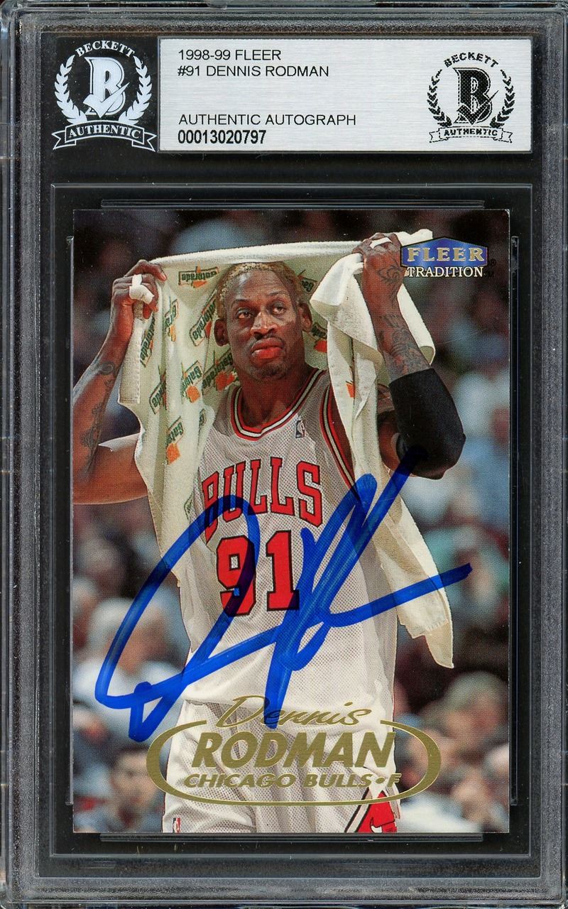 1998-99 FLEER BASKETBALL DENNIS RODMAN SIGNED CARD ( BECKETT AUTHENTICATED)