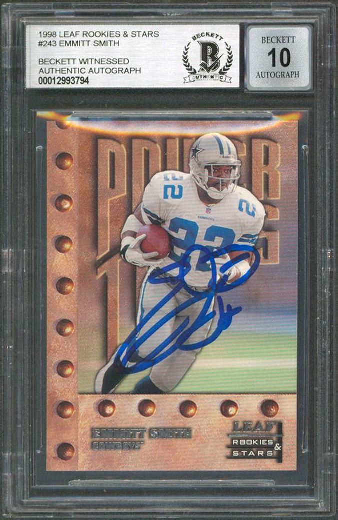 1998 LEAF ROOKIES & STARS #243 EMMITT SMITH AUTHENTIC w/10 AUTO (BGS SLAB)