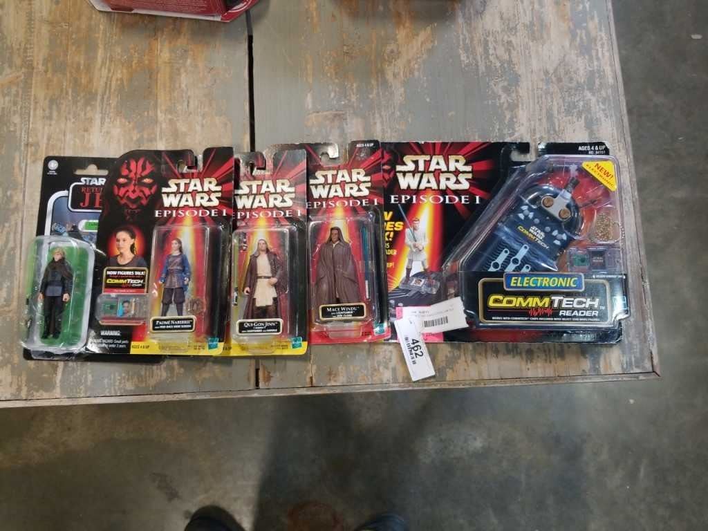 1998 STAR WARS ELECTRONIC COMM TECH READER PLUS 4 STAR WARS FIGURES - LUKE SKYWALKER, MACE WINDU, QUI GON JINN AND PADME