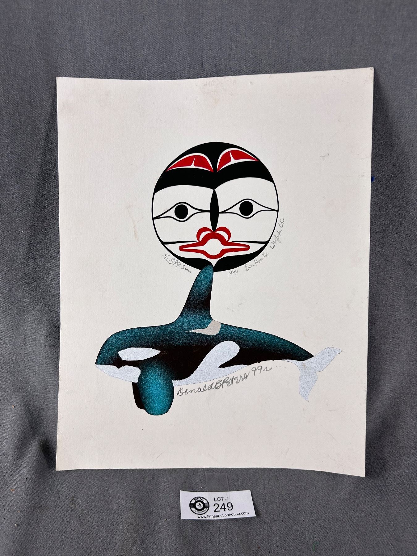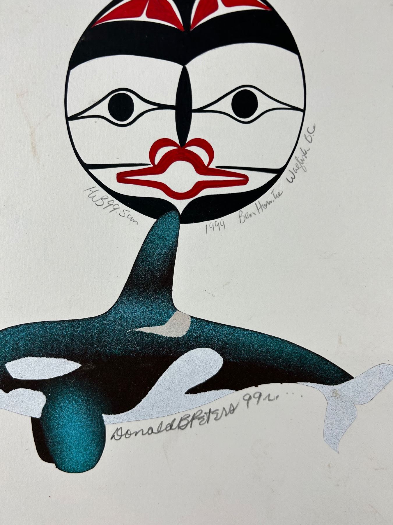 1999 Painting "Sun" By First Nations Artist Ben Houstie, Waglisla B.C.& Orca By Donald B Peters Approx. 11" x 14"