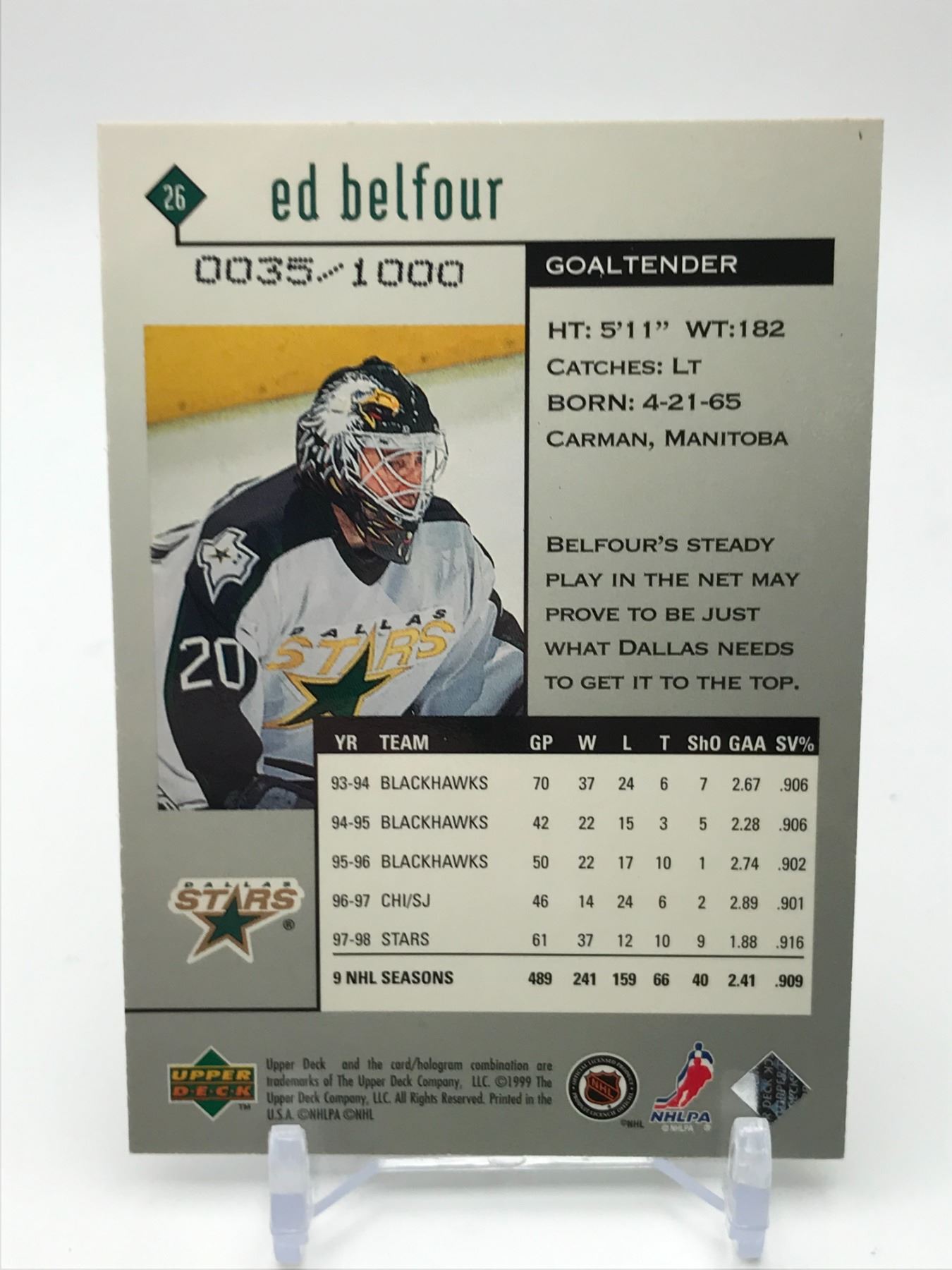 1999 UPPER DECK BLACK DIAMOND NO.26 ED BELFOUR 0035/1000