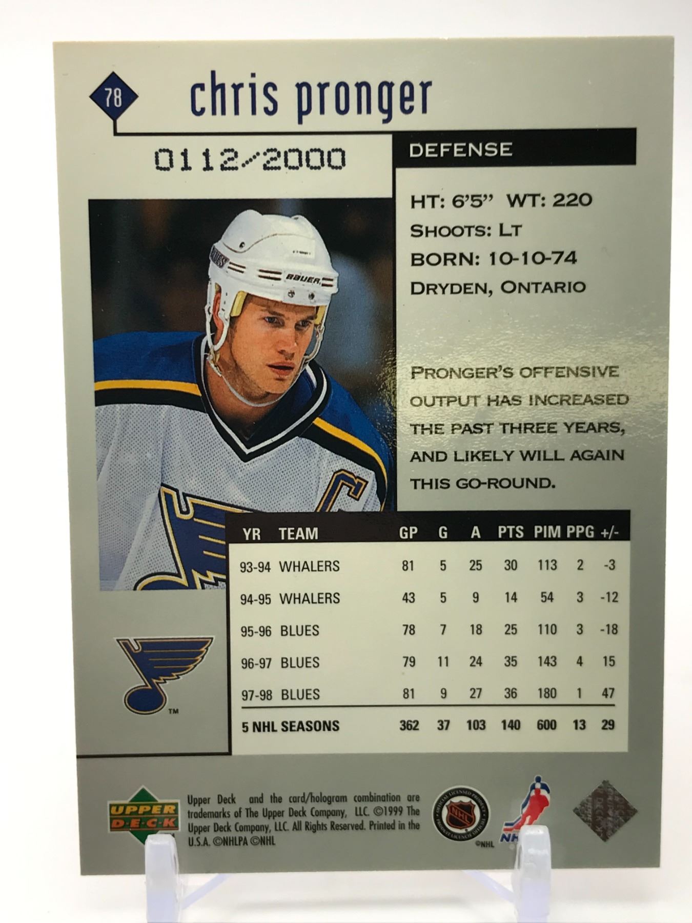 1999 UPPER DECK BLACK DIAMOND NO.78 CHRIS PRONGER 0112/2000