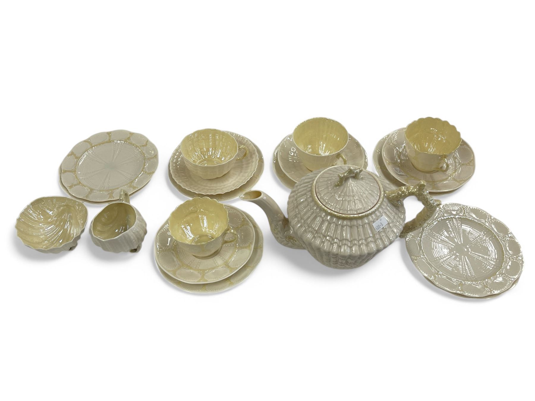 19pcs Of Vintage Belleek Dishware: Teapot, Saucers, Tea Cups, Creamer, Bowl