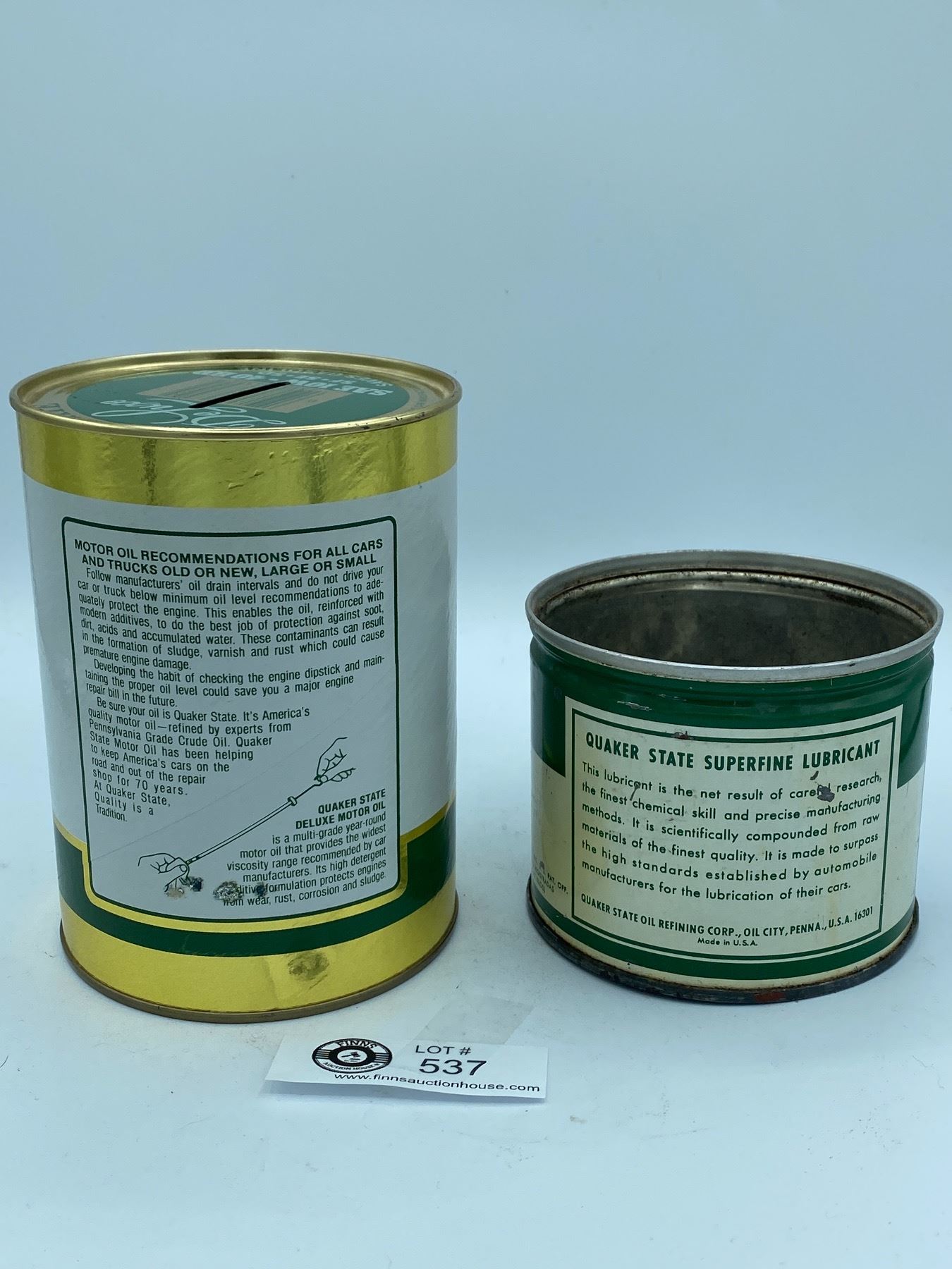 1lb Quaker State Wheel Bearing Lubricant Tin with No Lid + Quaker State 1 qt Motor oil Piggy Bank