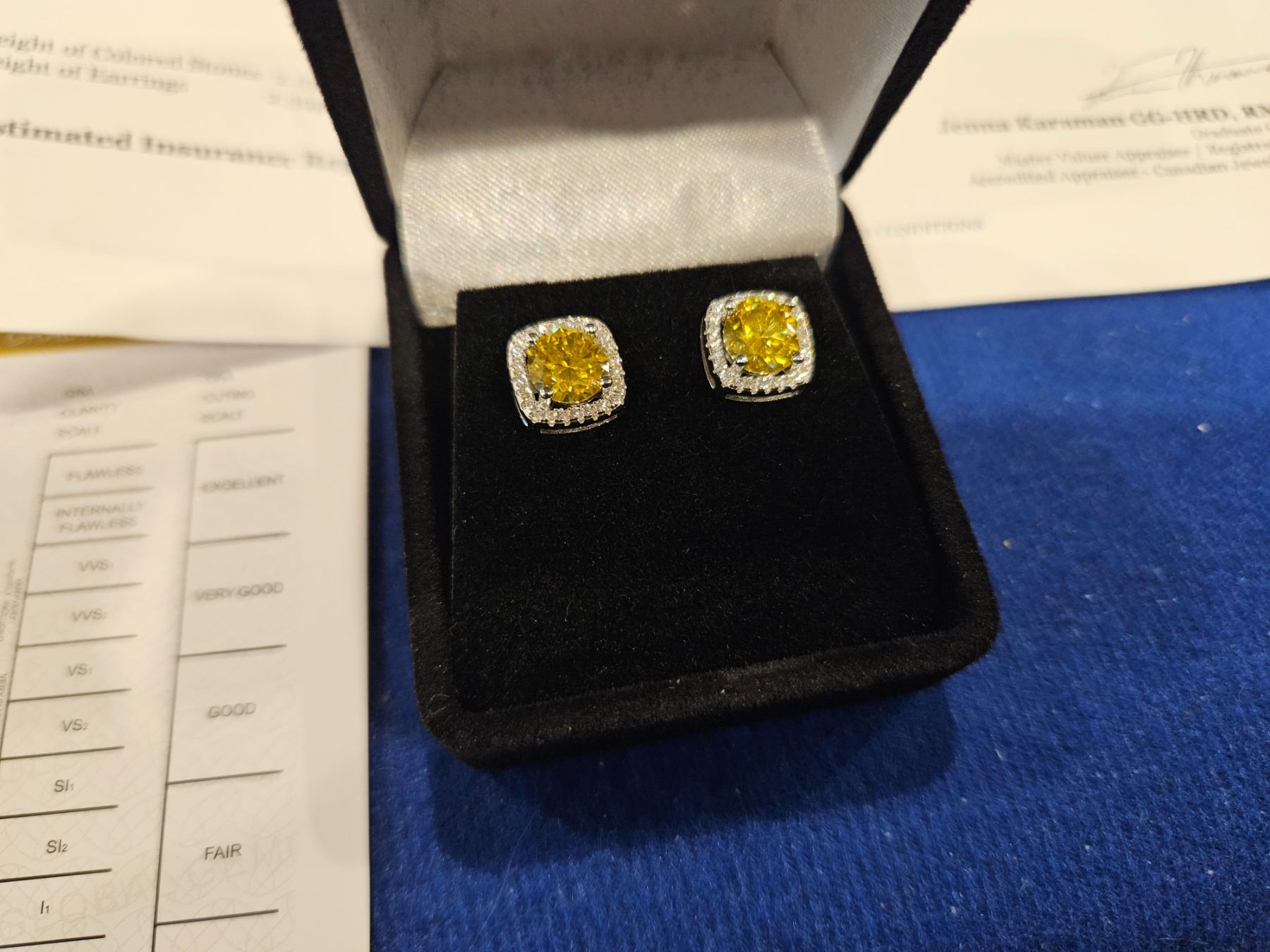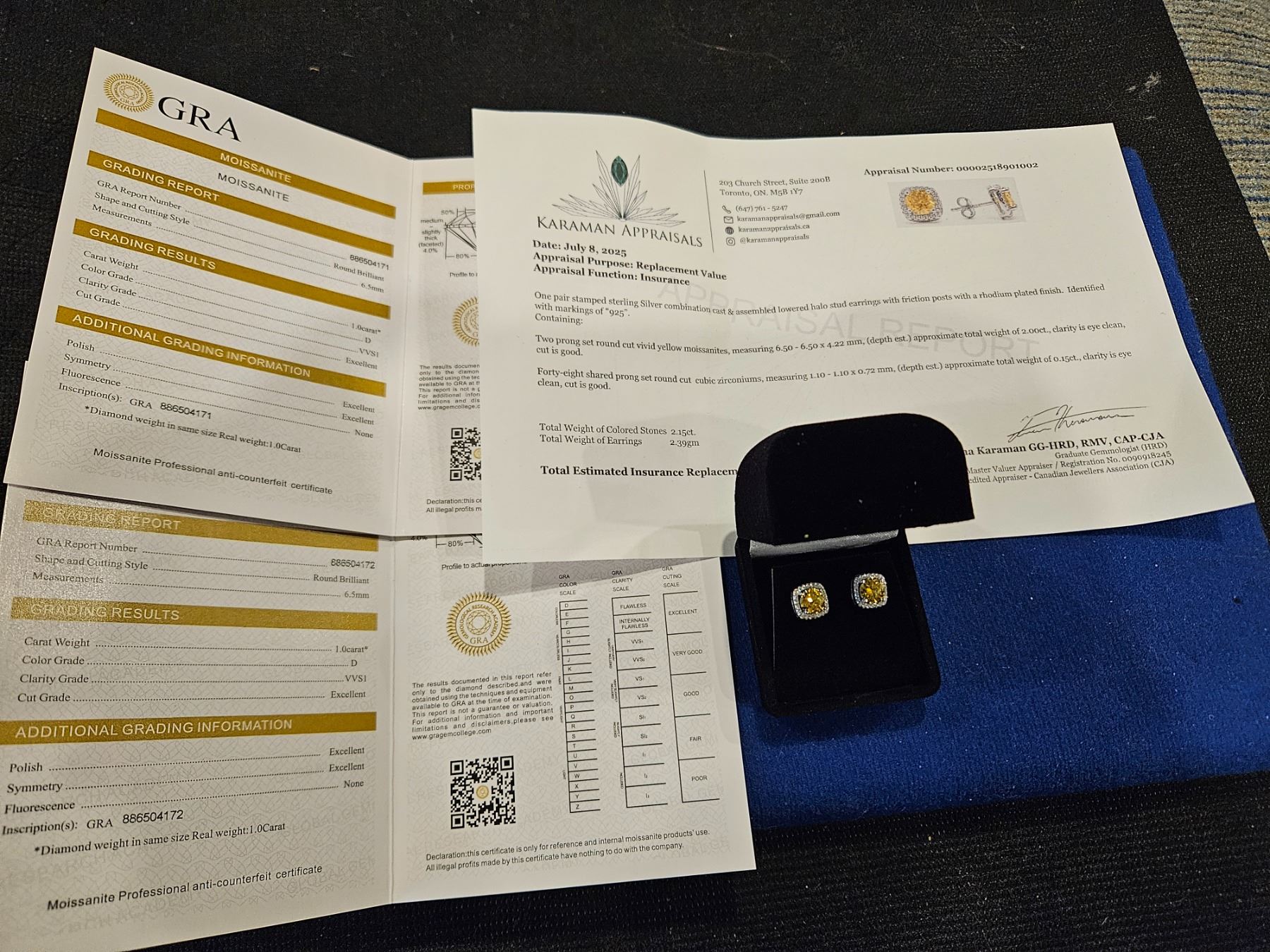 2.00 CT TW GRA CERTIFIED ROUND BRILLIANT CUT MOISSANITE STONE VVS D COLOR WITH 34 ROUND BRILLIANT CUT CUBIC ZIRCONIA SET IN TEAR DROP SHAPE SET IN 925 SILVER EARRINGS RETAIL VALUE $1,350.00