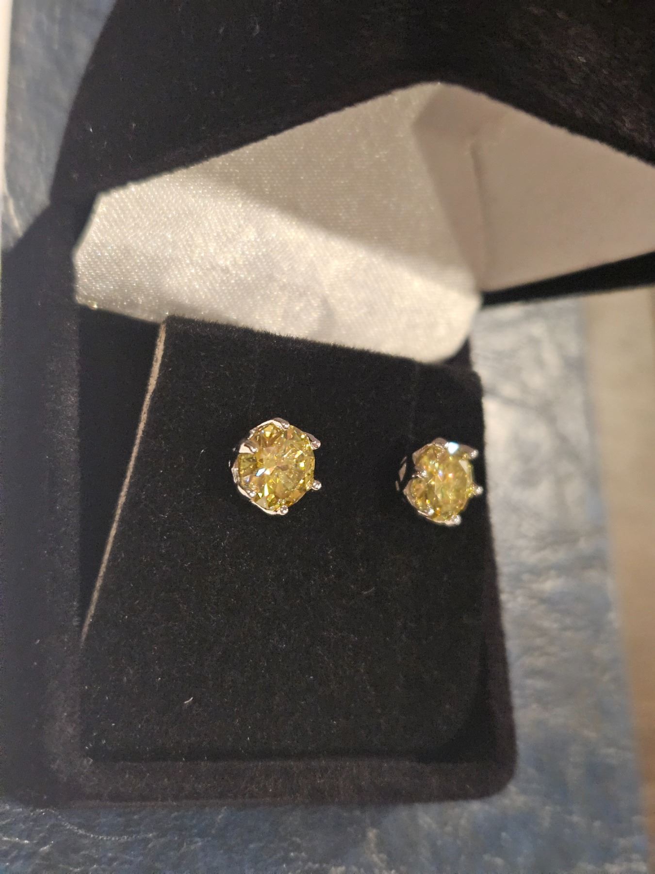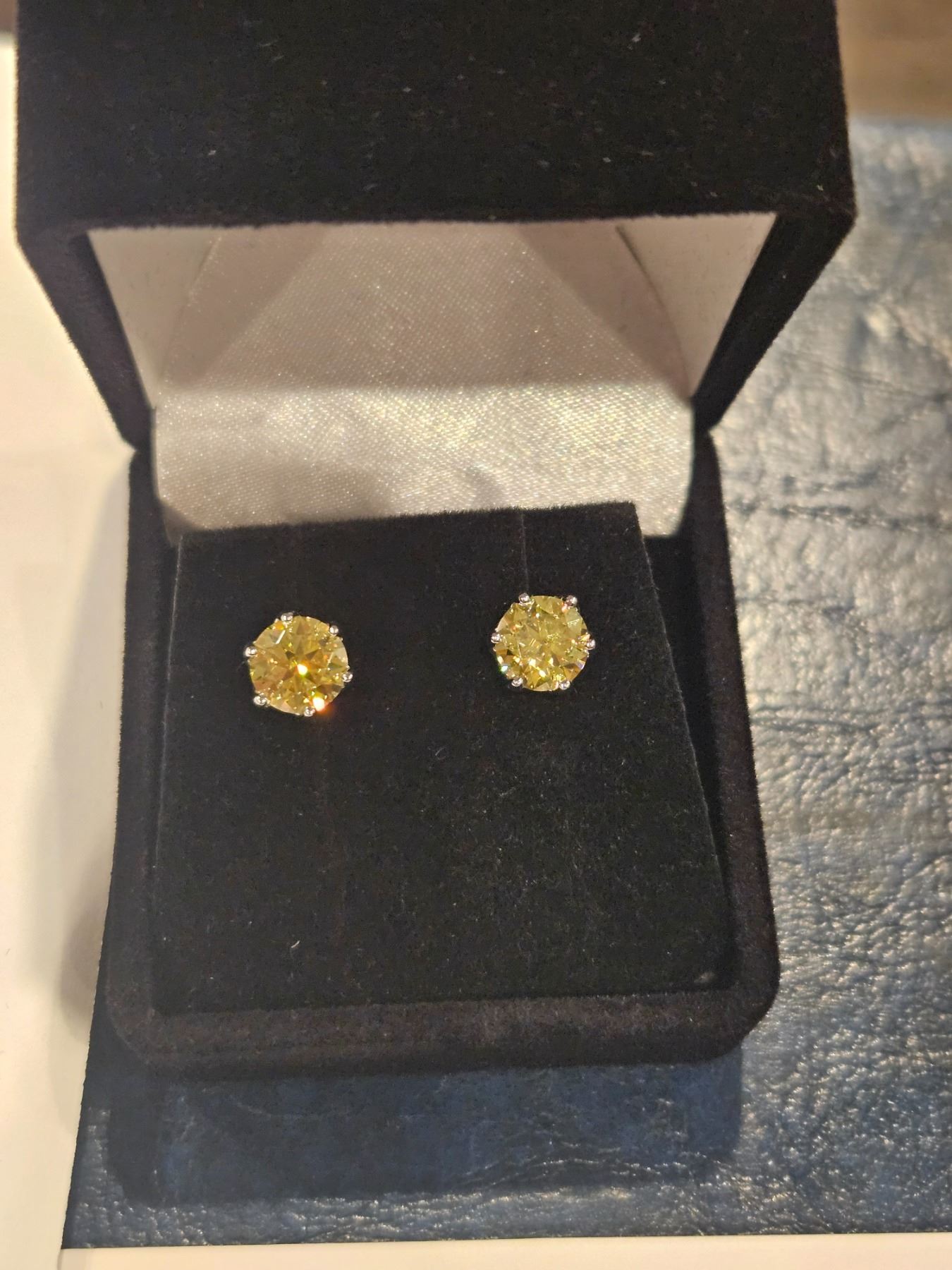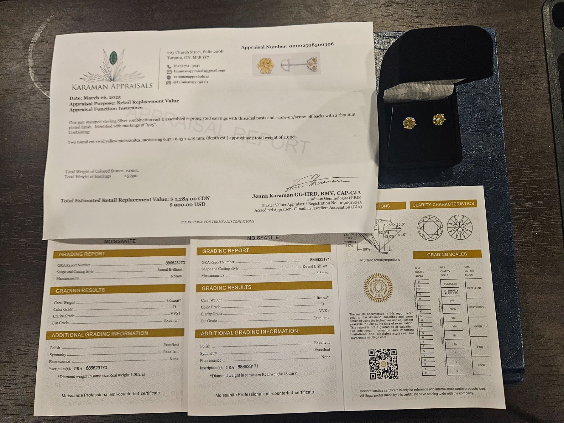 2.00 CT GRA CERTIFIED ROUND BRILLIANT CUT MOISSANITE STONES VVS VIVID YELLOW COLOR SET IN 4 CLAW HEAD SET IN 925 SILVER EARRINGS WITH SCREW BACKS RETAIL VALUE $1,285.00
