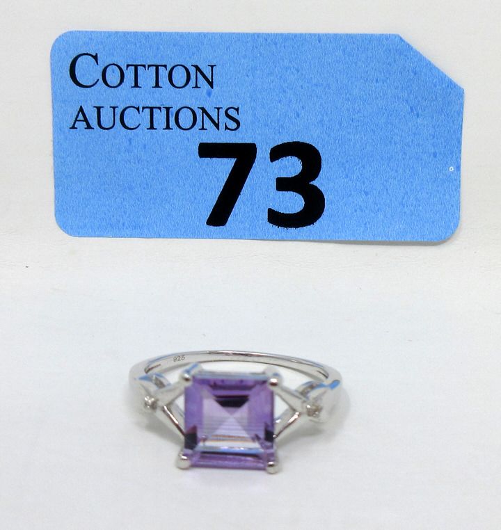 Princess cut amethyst & 2 diamonds. Includes a $350 certificate.