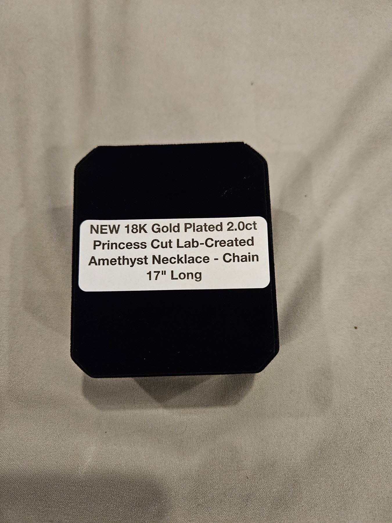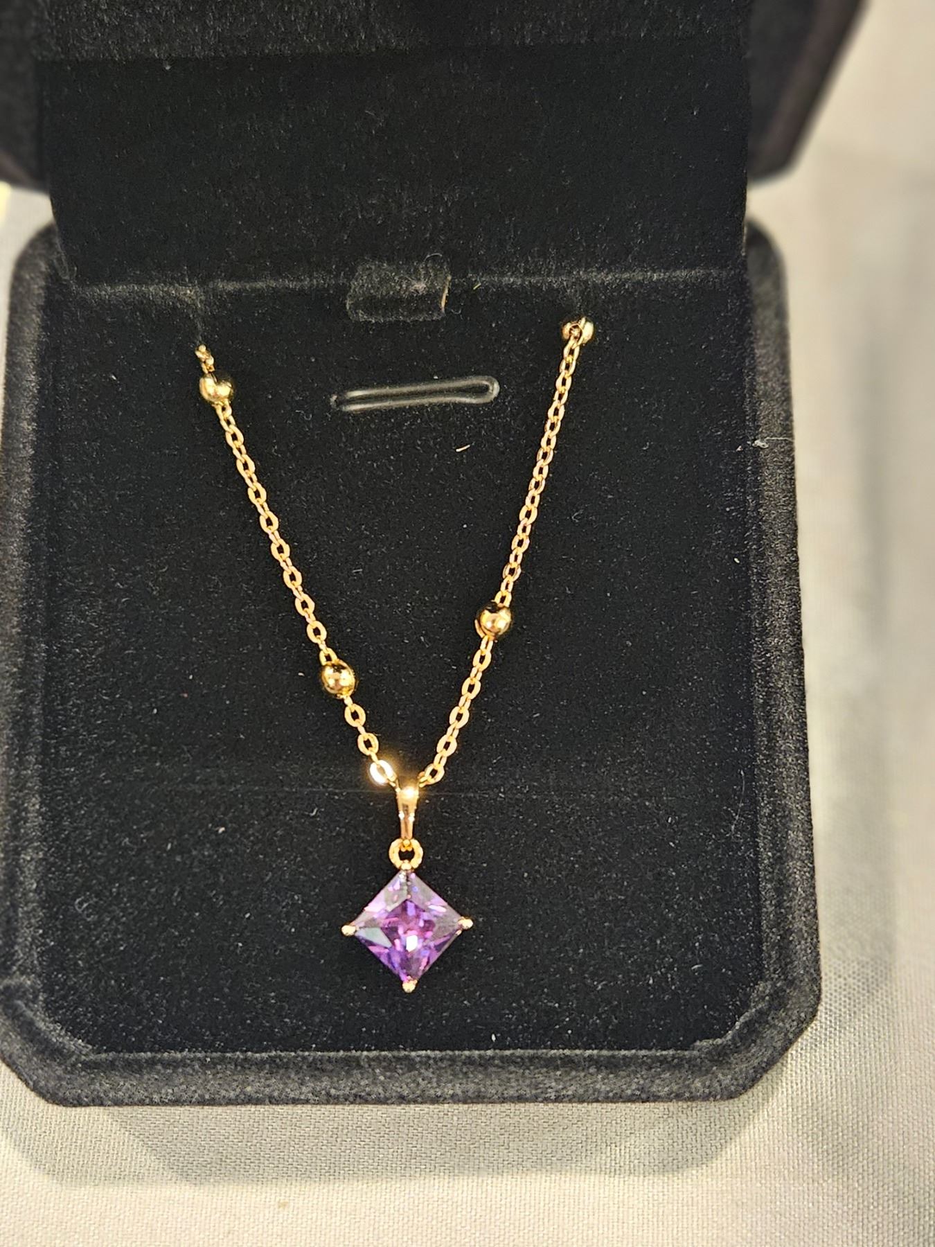 18K Gold plated 2.0CT Princess cut lab-created Amethyst Necklace- 17" chain