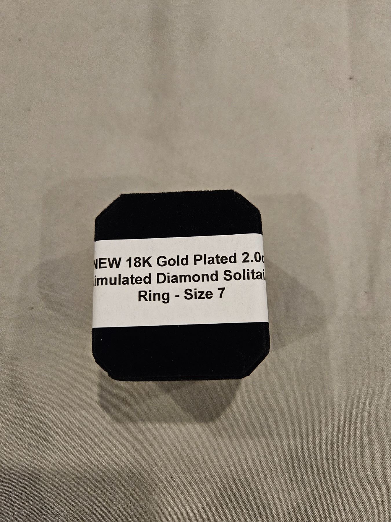18K Gold plated 2.0ct Simulated Diamond Solitaire ring- Size 7