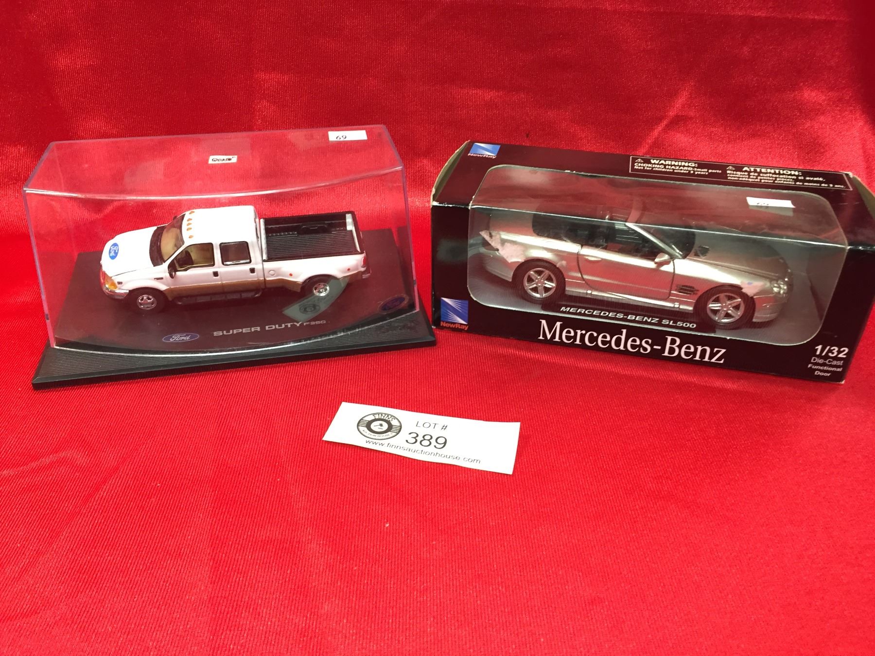 2 1:32 Scale Diecast Cars. Mercedes Benz SL 500 and A Ford Super Duty 350 Brand New in the Package