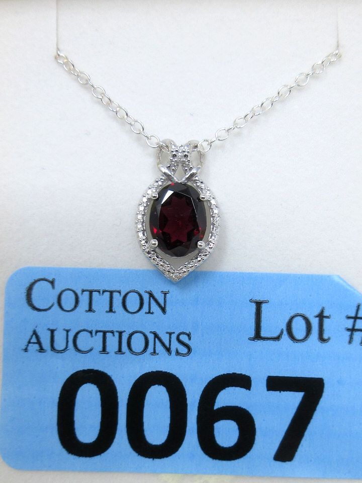 9 x 7 mm Oval garnet. Includes a chain & a $300 certificate.