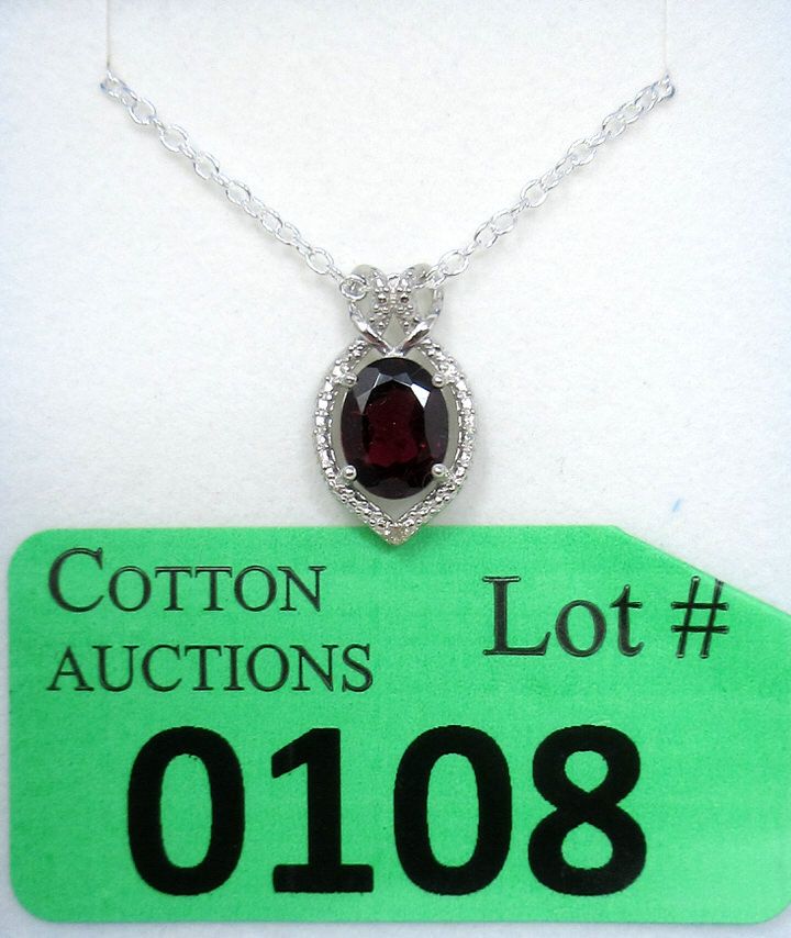 Oval cut garnet with a double loop bail. Includes a chain & a $300 certificate.