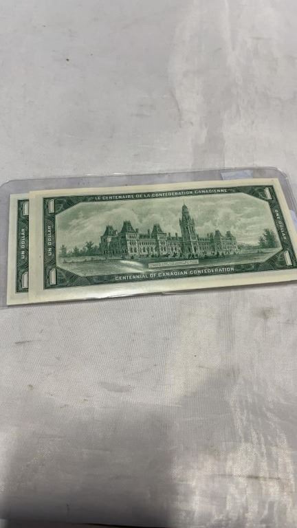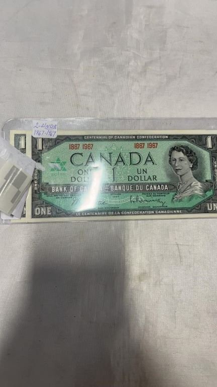2- 1867- 1967 1 DOLLAR BILLS UNCIRCULATED