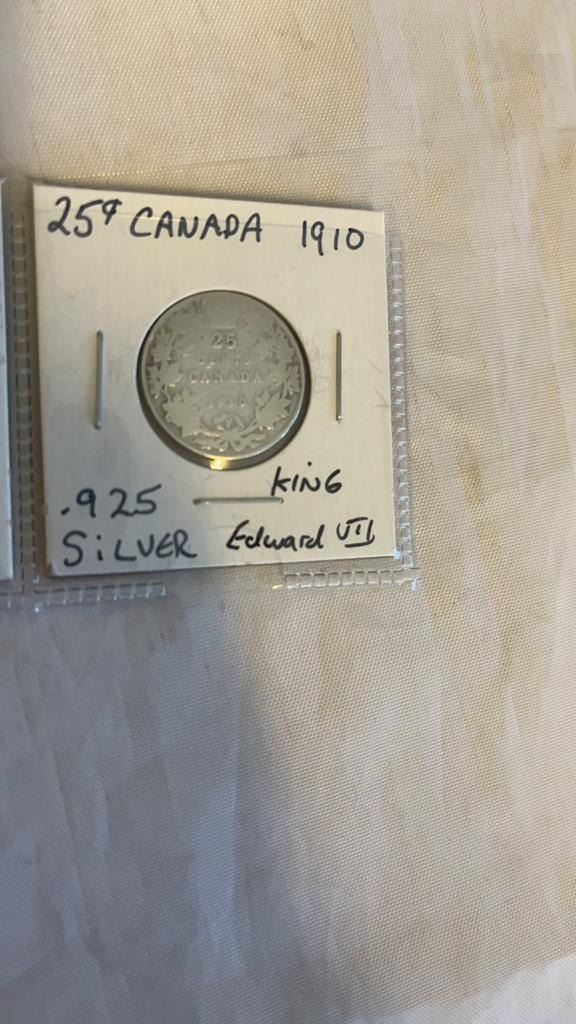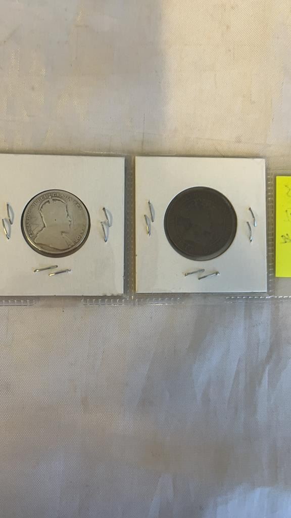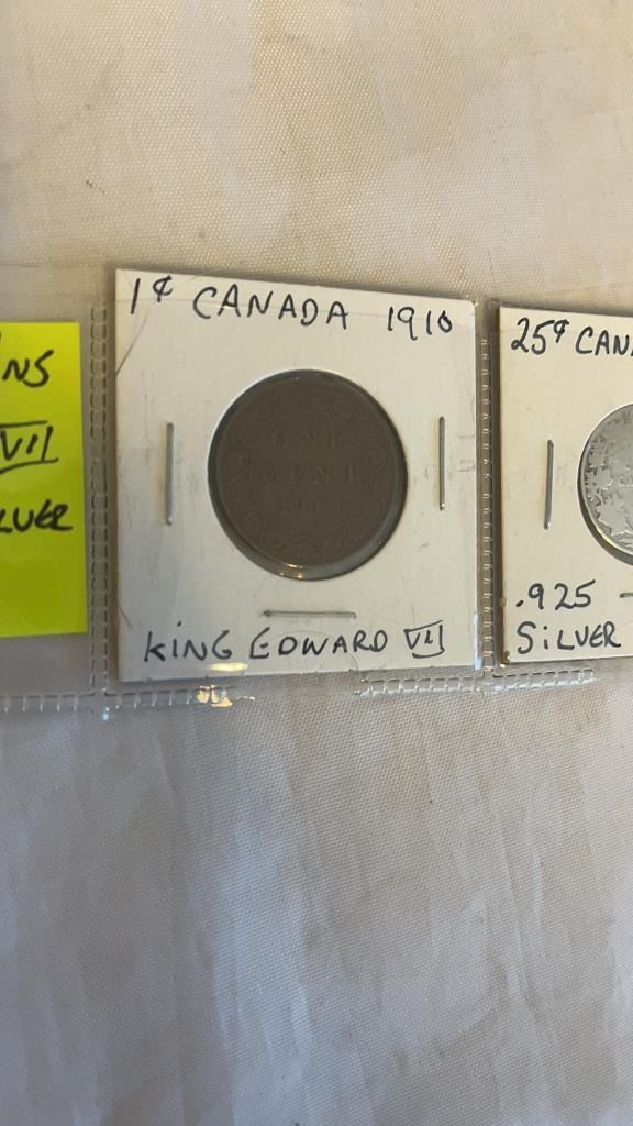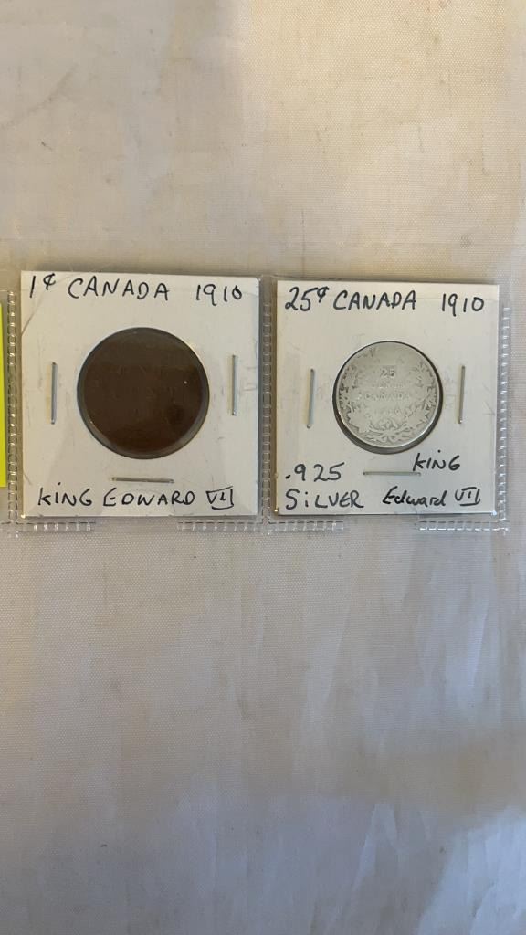 2 1910 COINS EDWARD VII - 25 CENT (.925 SILVER) 1 LARGE CENT