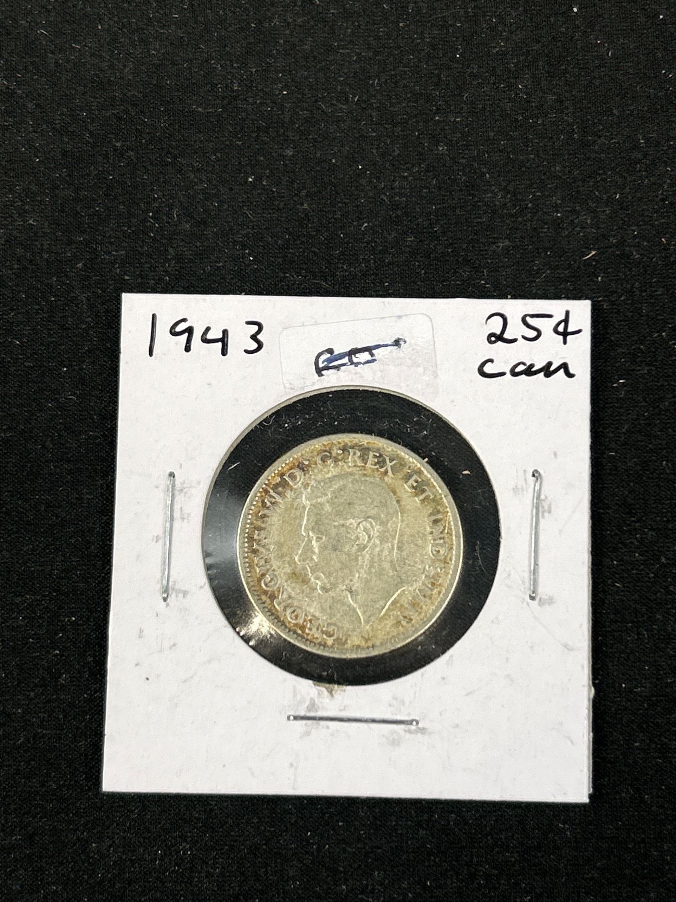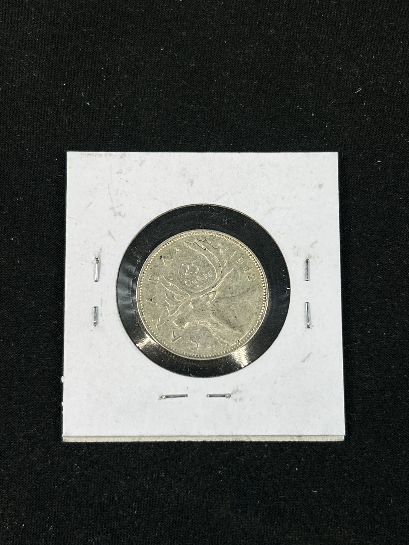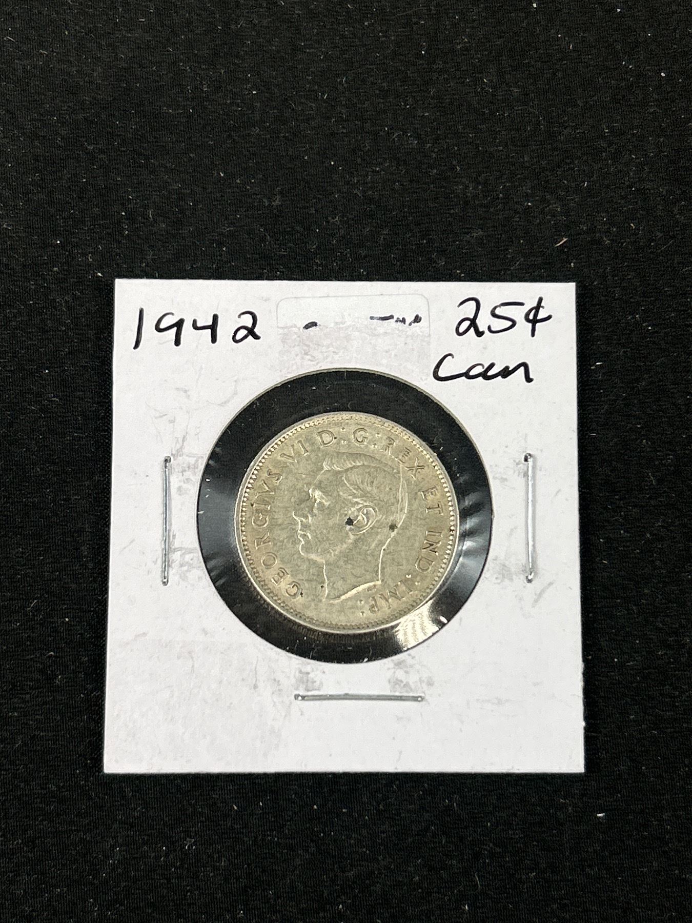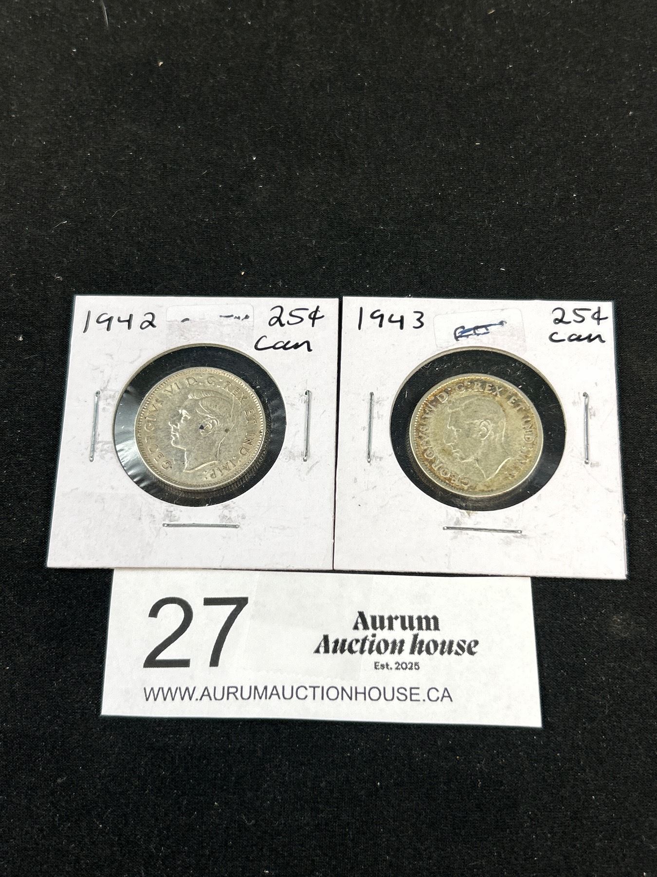 2 1942 + 1943 CDN Silver 25 Cent Coins