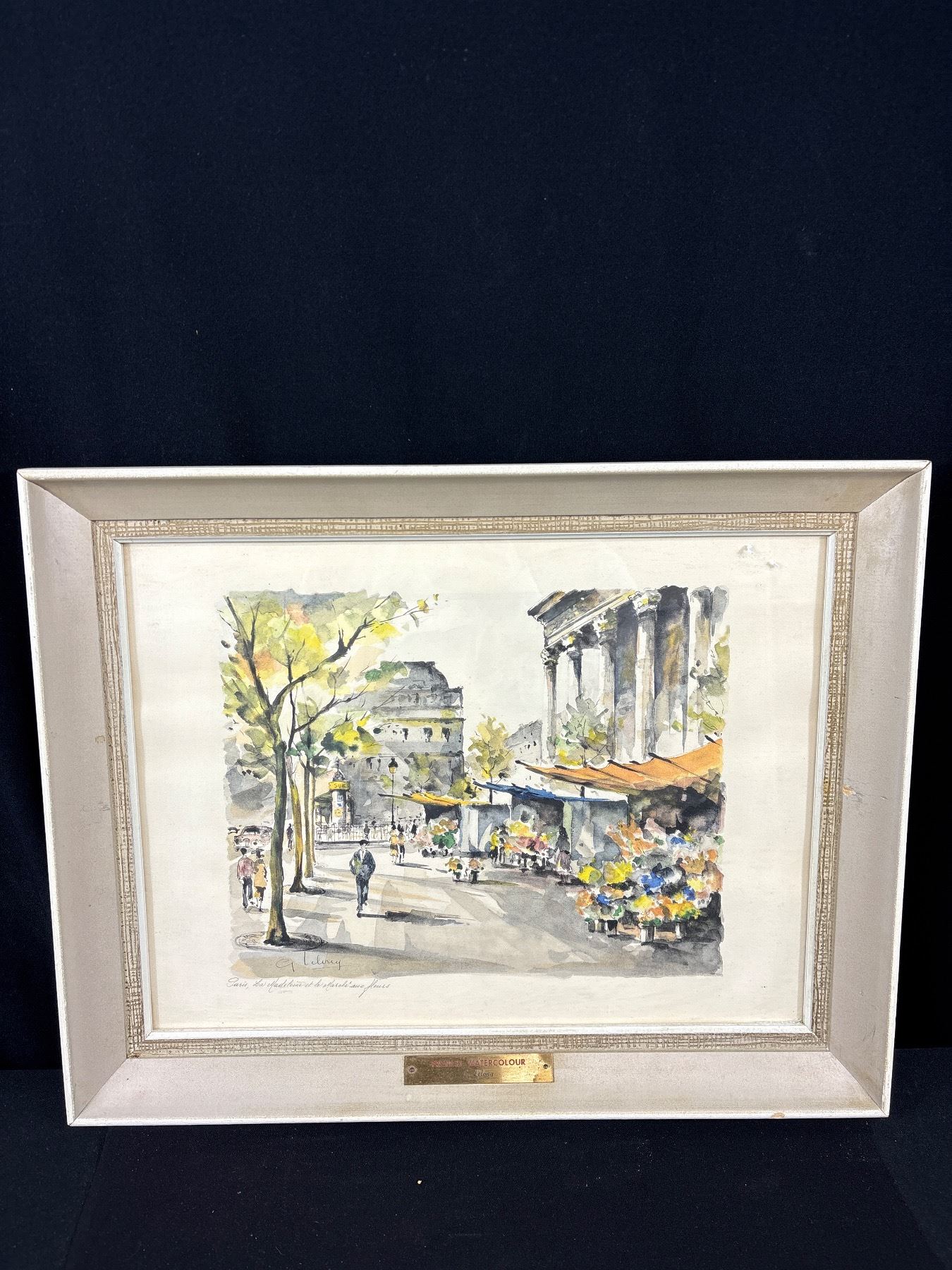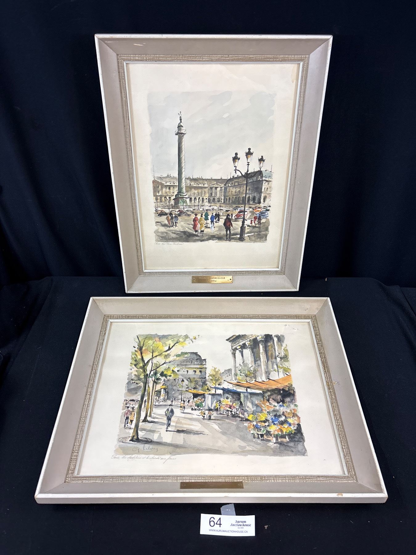 2 1950s French Watercolor Pictures, by G.Lelong Each Approx 15" x 19"