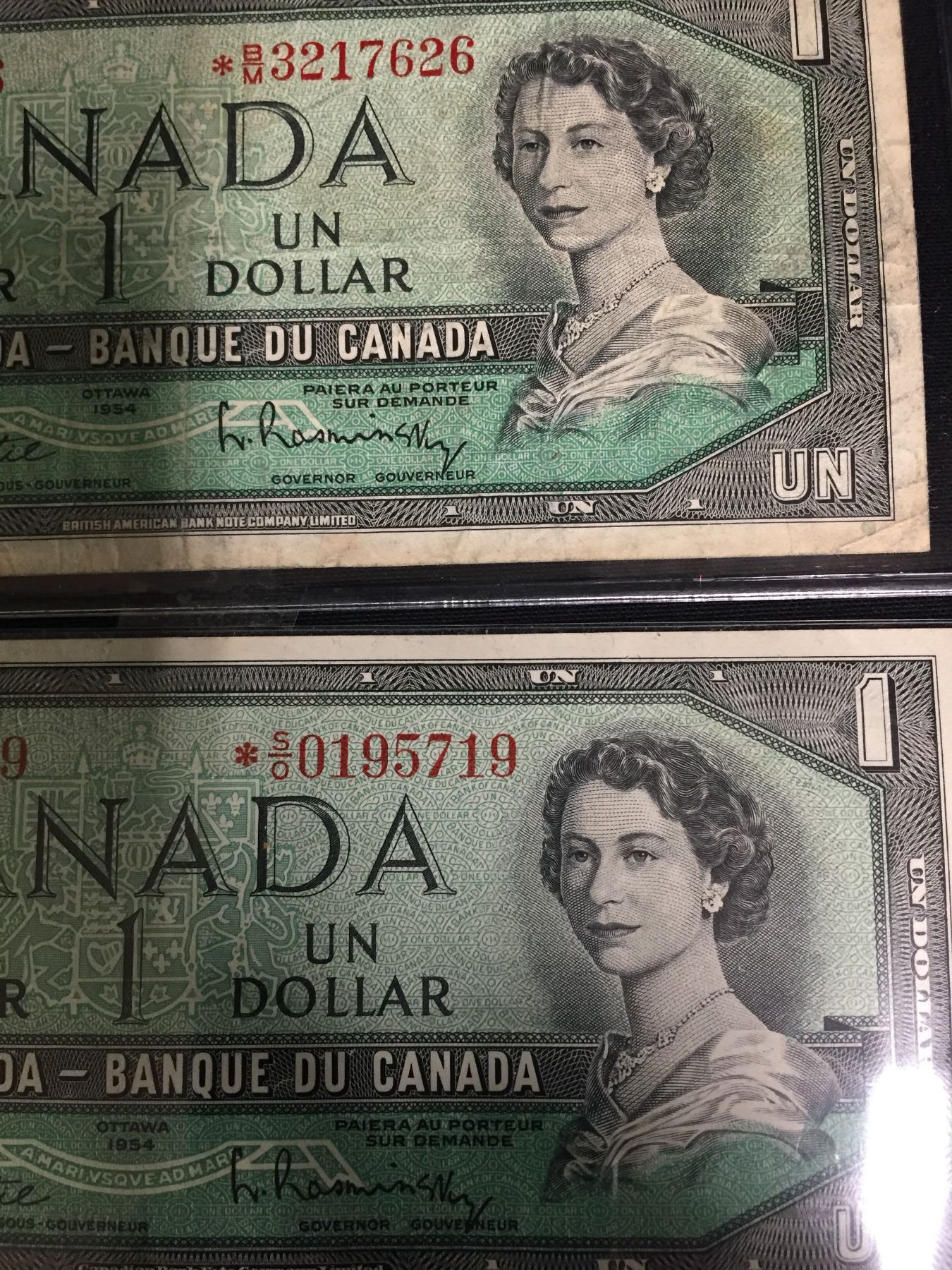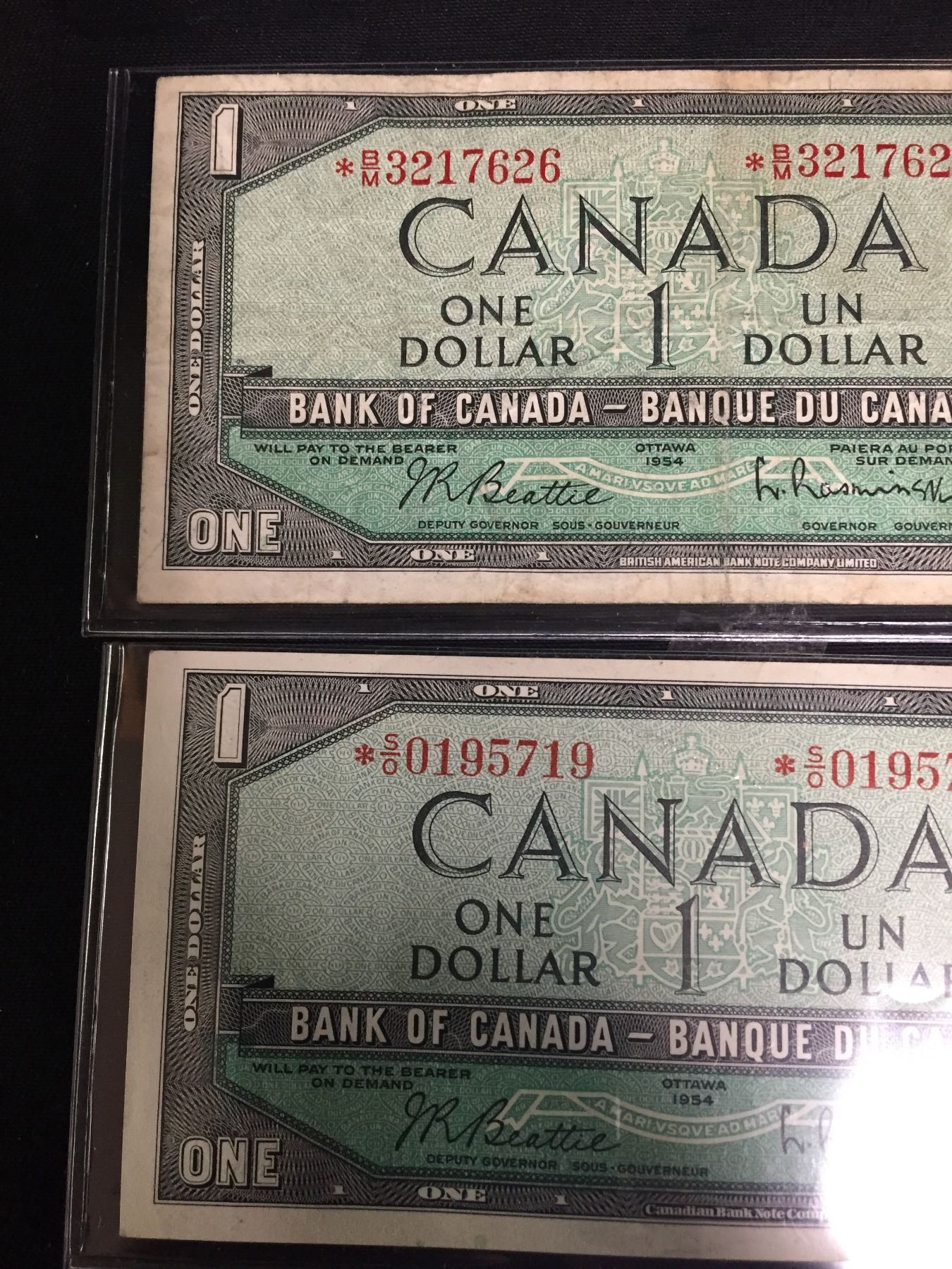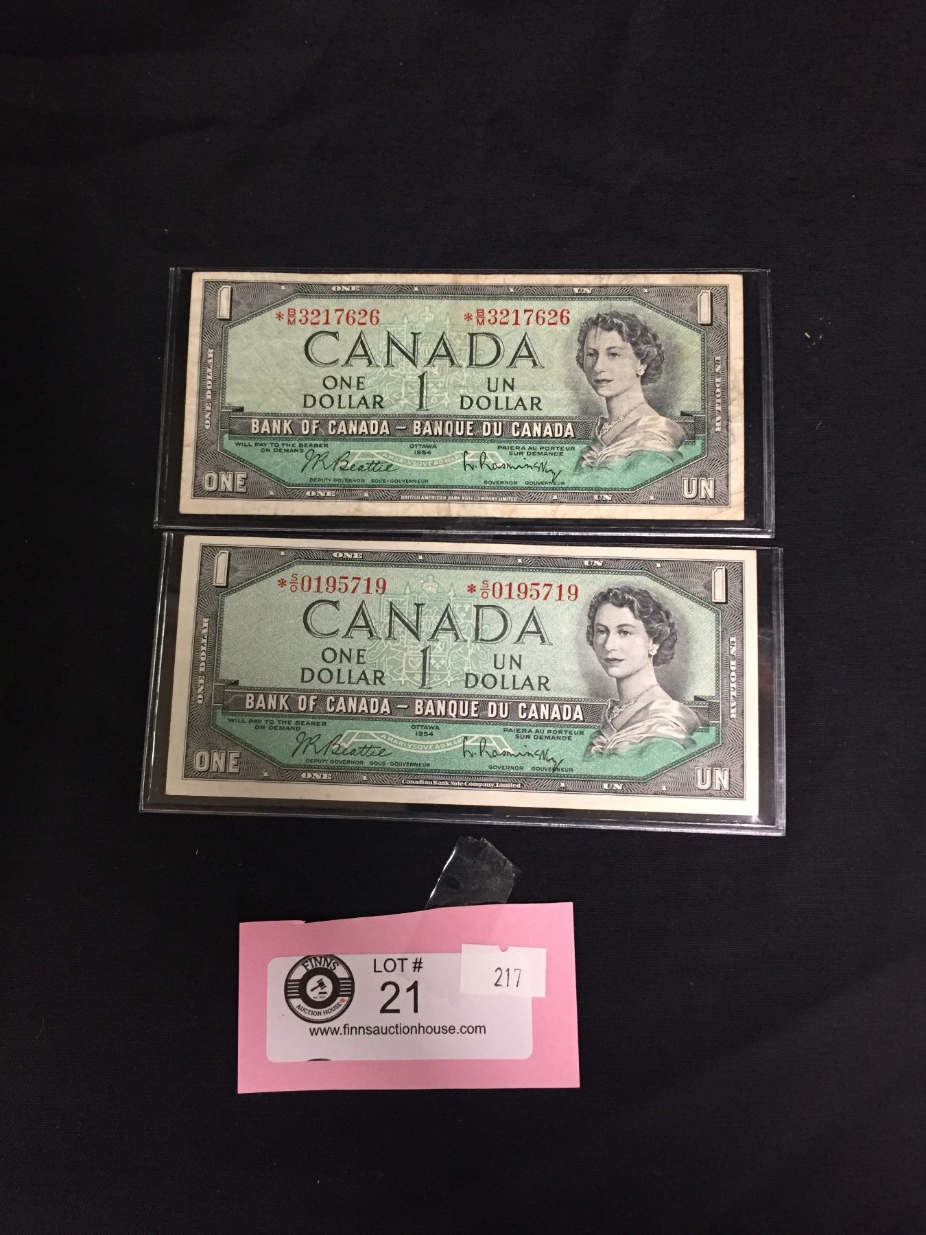 2 1954 $1 Bank of Canada Replacement Notes in Sleeve