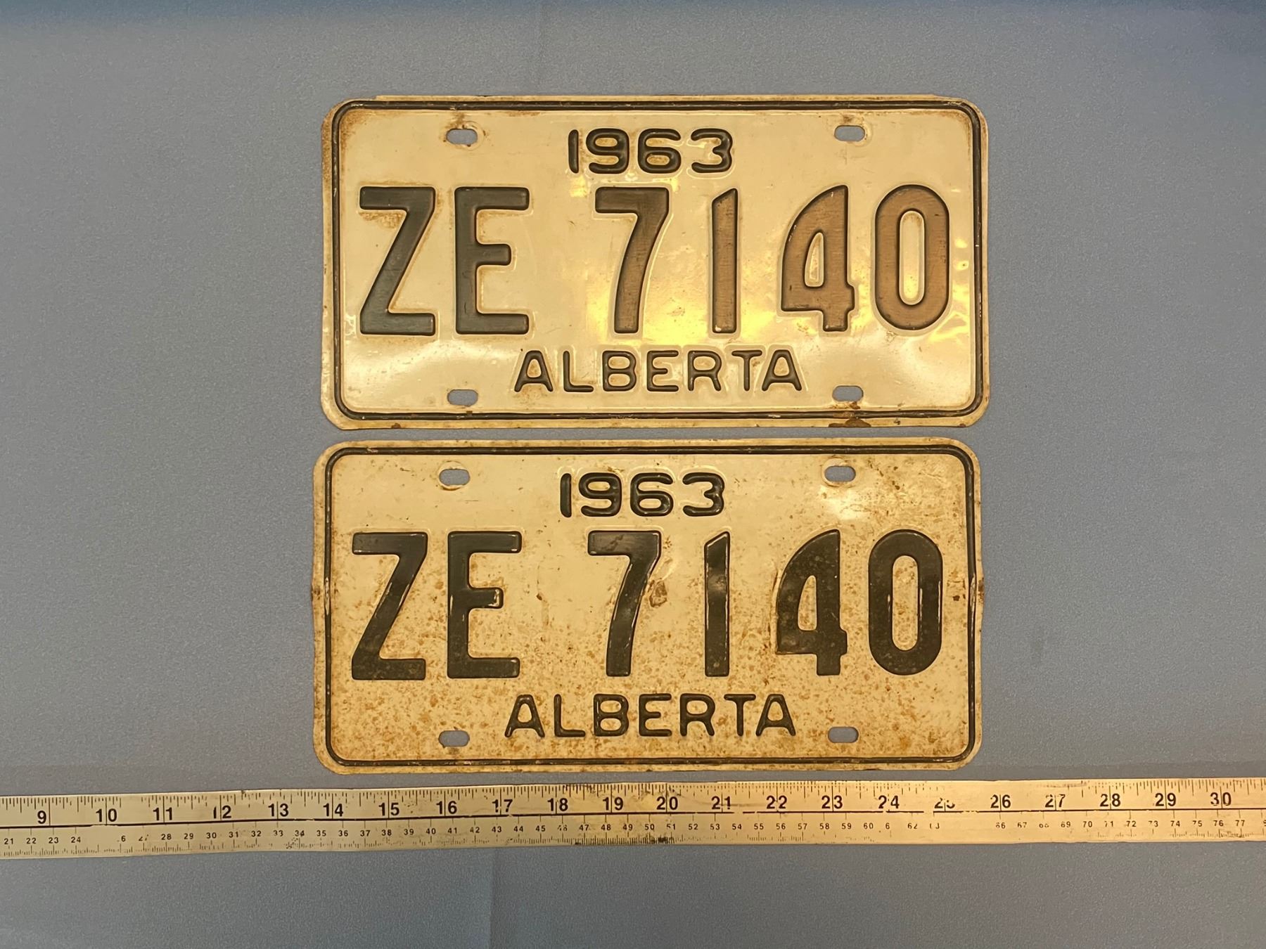 2 1963 ALBERTA LICENSE PLATE - 17% BUYER FEE. PAYMENT PROCESSED THROUGH LIVE AUCTION WORLD ( VISA OR MASTER CARD ) PICK UP SATURDAY, OR TUESDAY