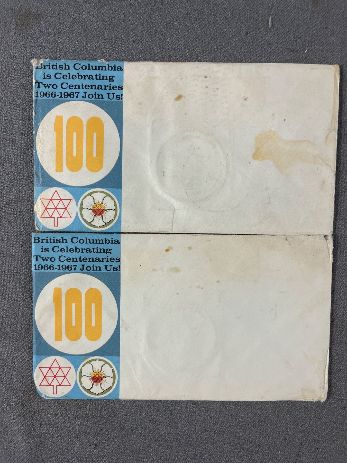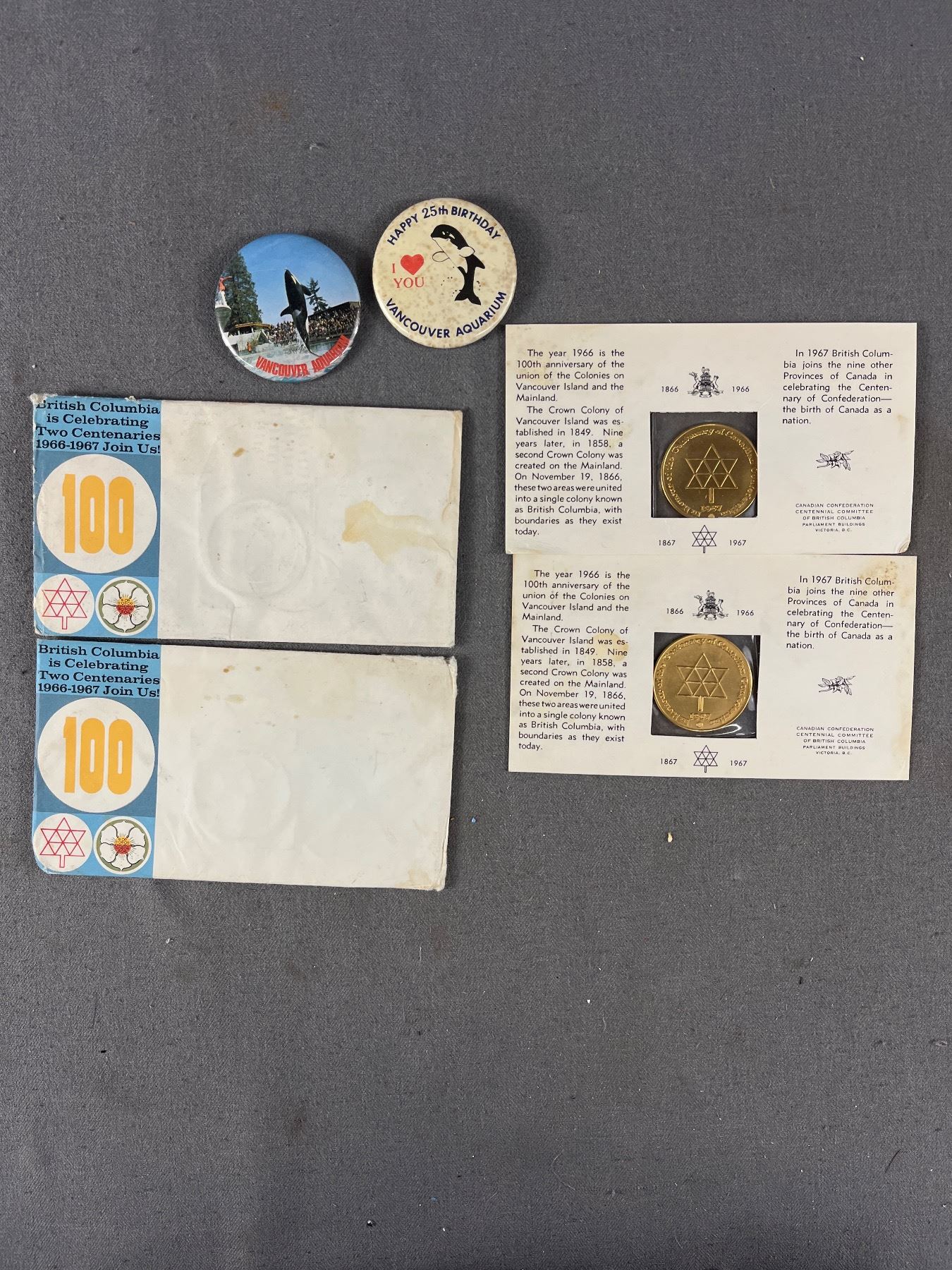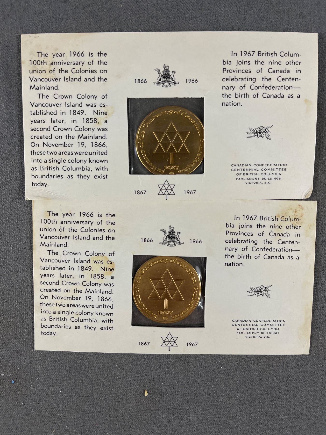 2 1967 Centennial (Canada) Medallions w/ Card & Envelope
