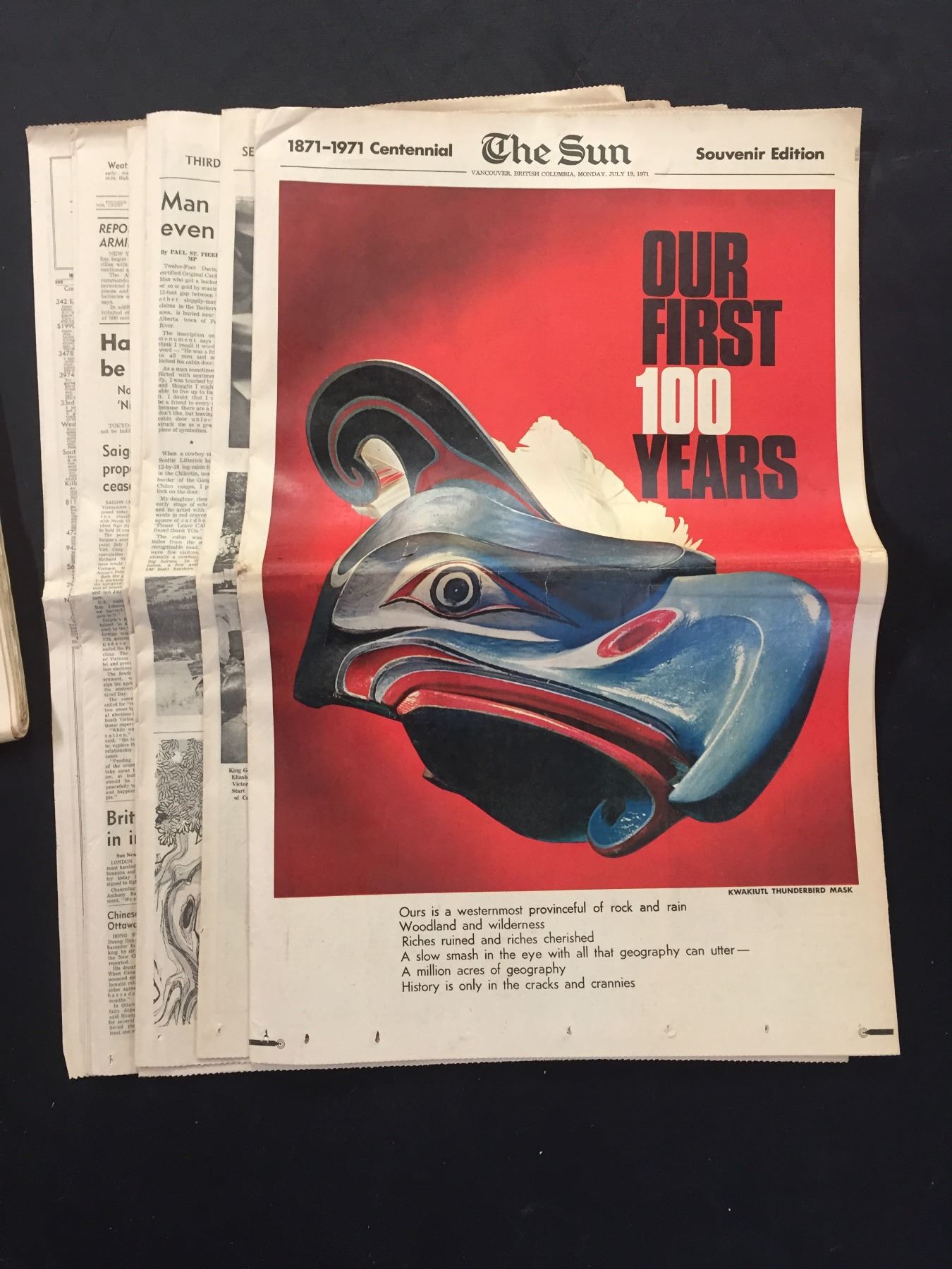 2 1971 Vancouver Sun Newspapers. 1871-1971 Centennial Souvenir Editions