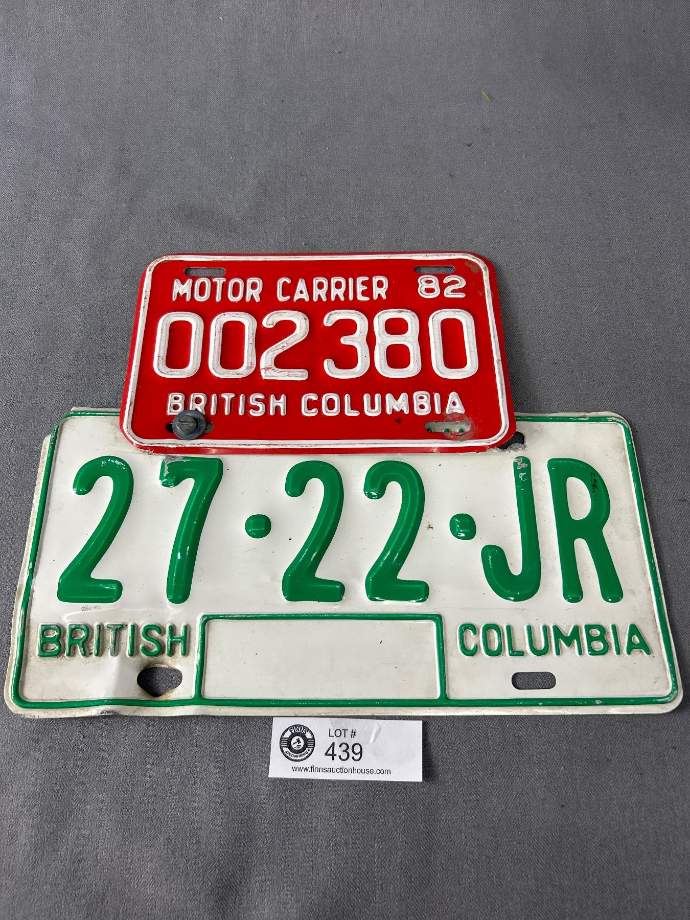 2 1982 BC License Plate w/ Motor Carrier License Plate
