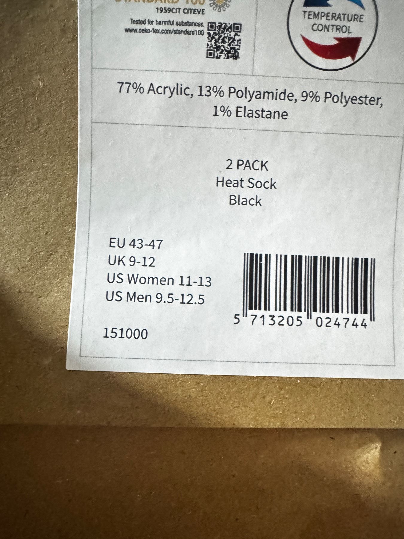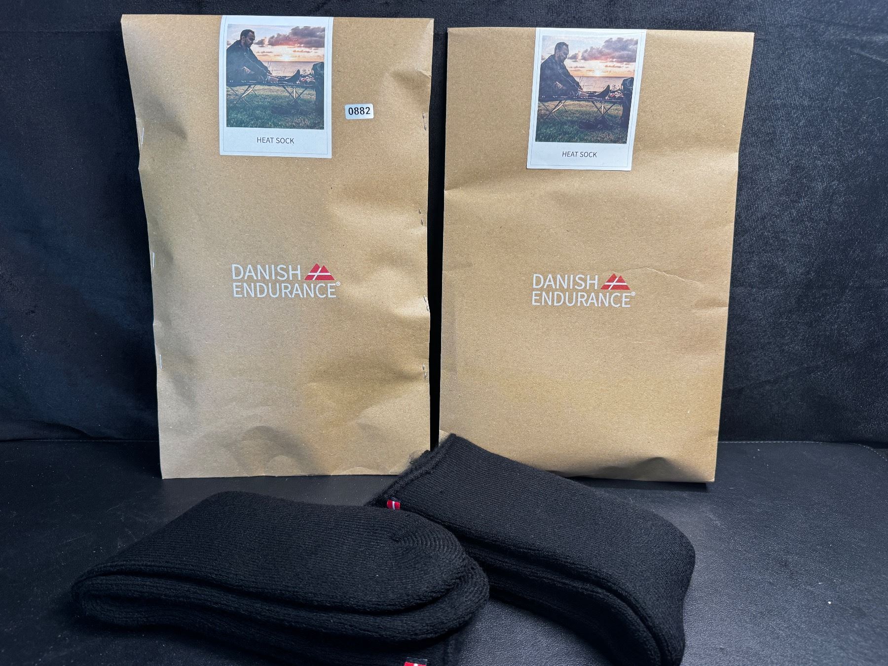 2 2-Packs of Danish Endurance Black Heat Socks Fits Men Size 9-12 and Women Size 11-13- New