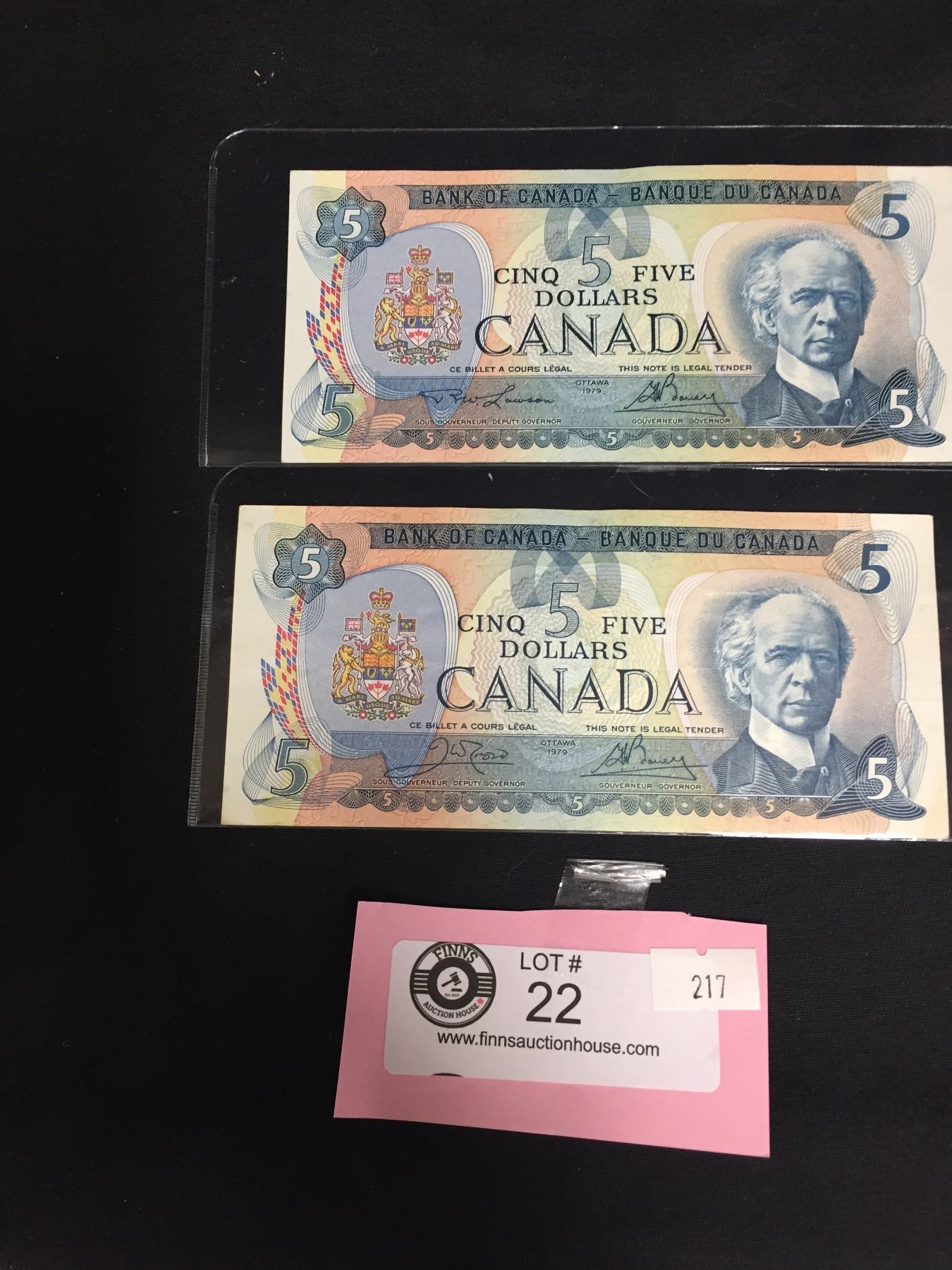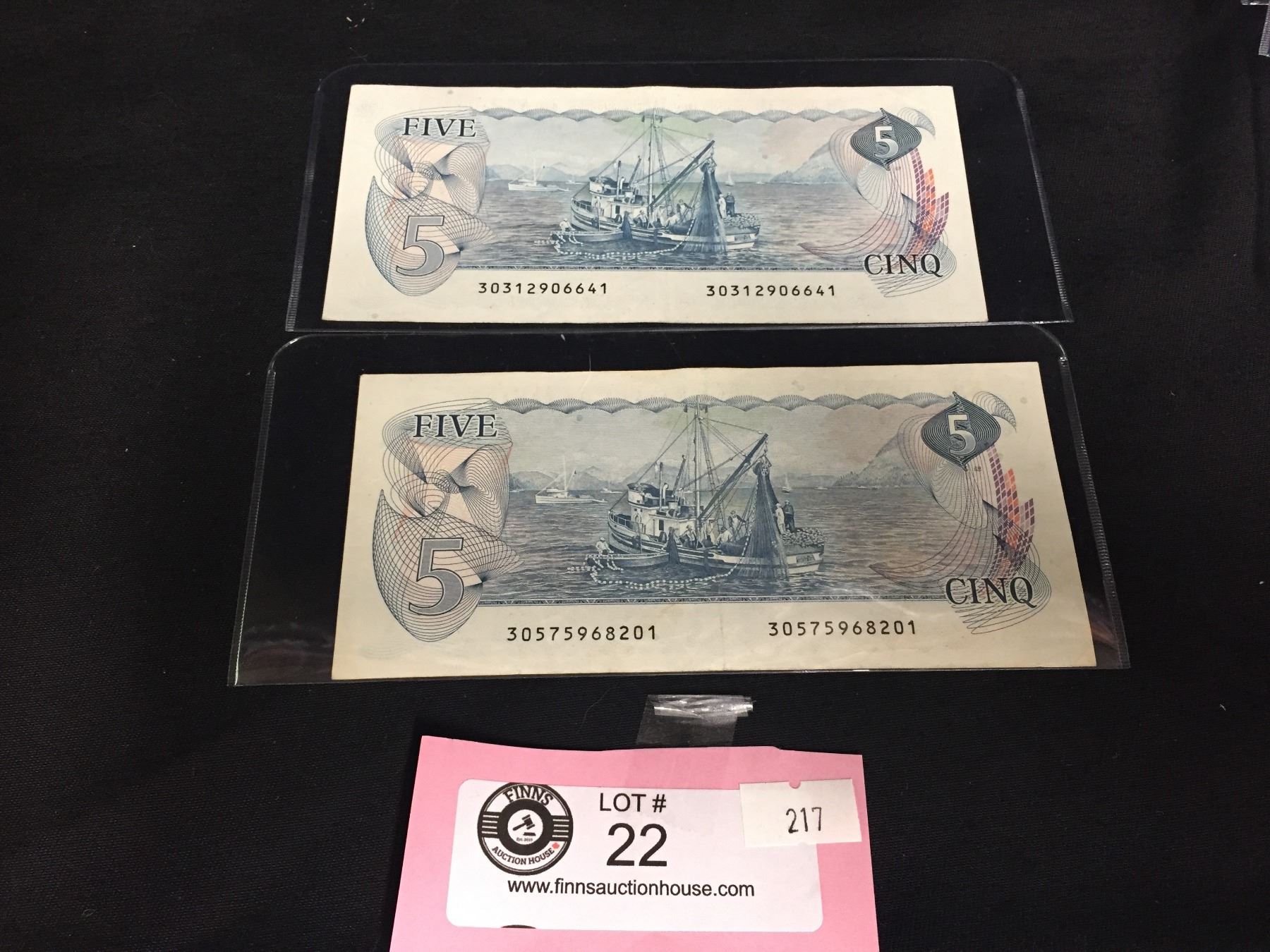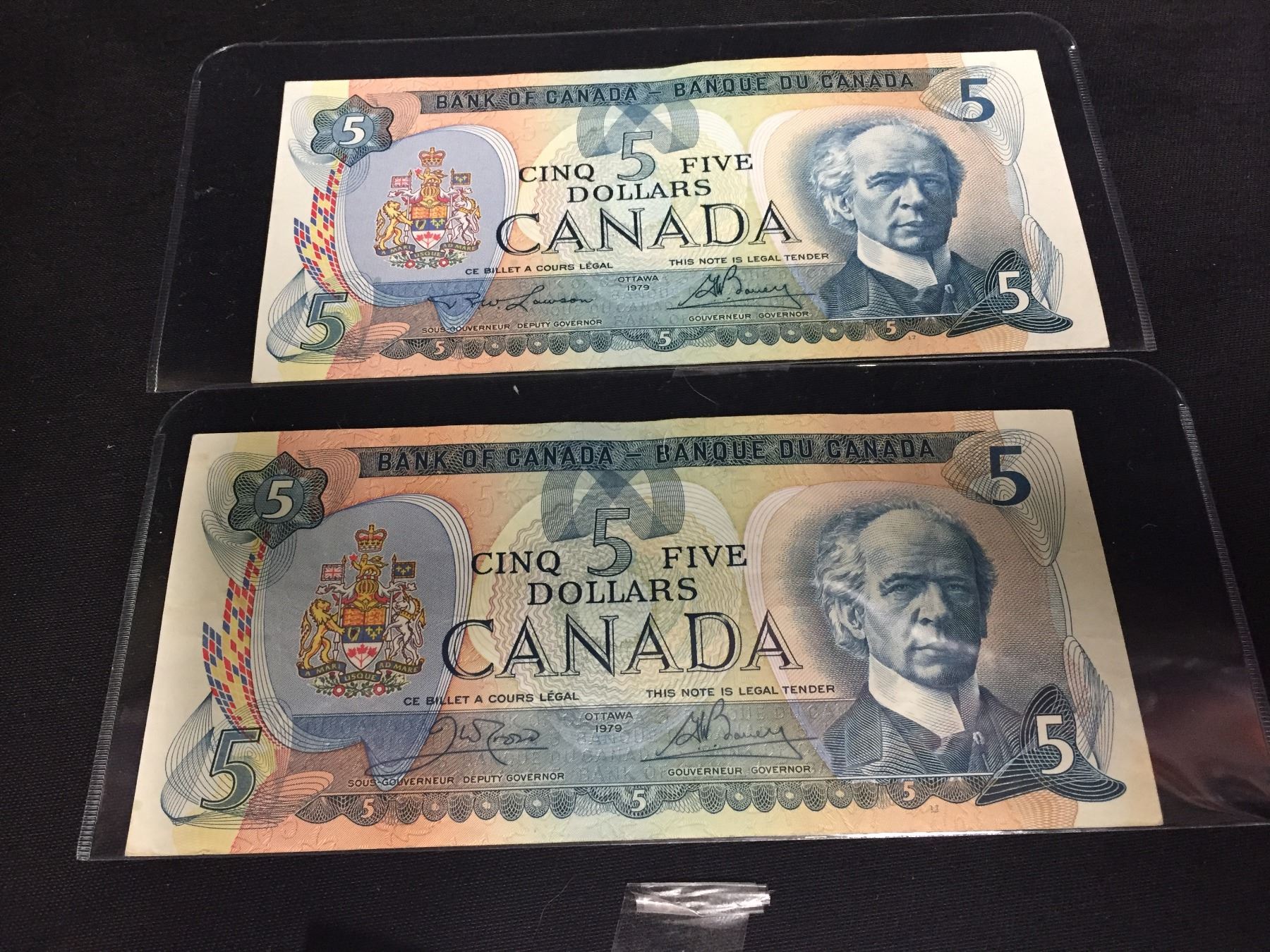2 $5 Bank of Canada Bank Notes in Sleeves