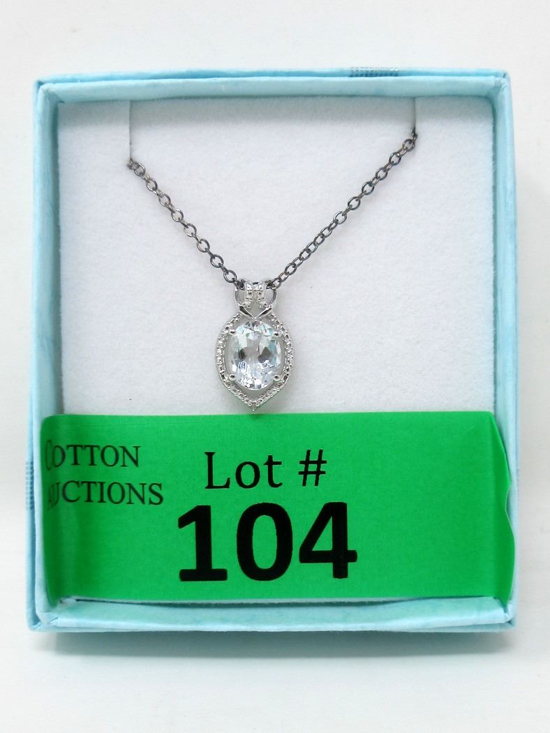 7 x 9 mm Oval topaz set in sterling silver. Double loop bail. Includes chain & $250 certificate.