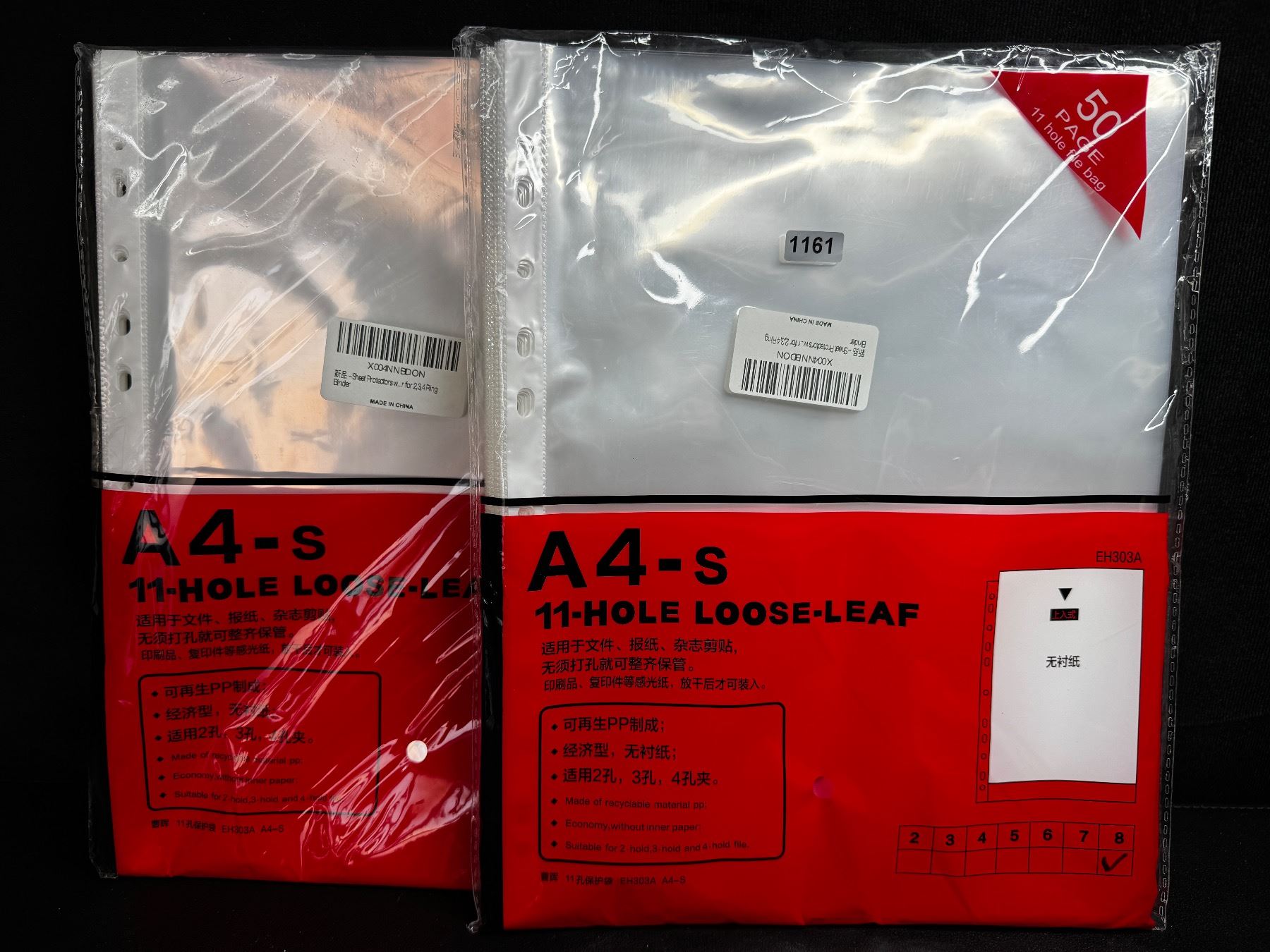 2 50-Packs of A4-S 11-Hole Loose Leaf Sheet Protectors - New