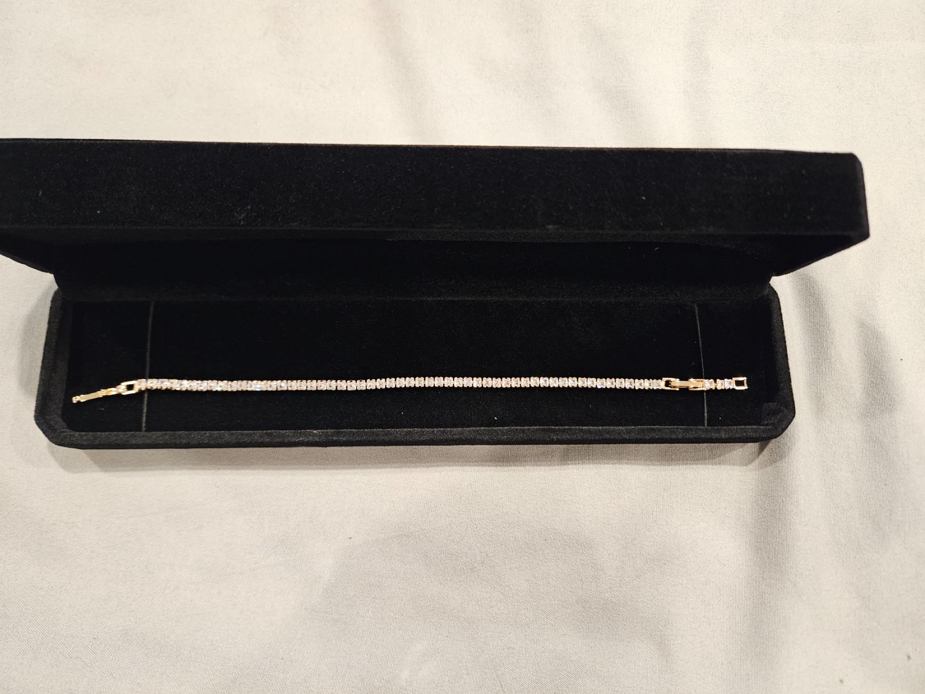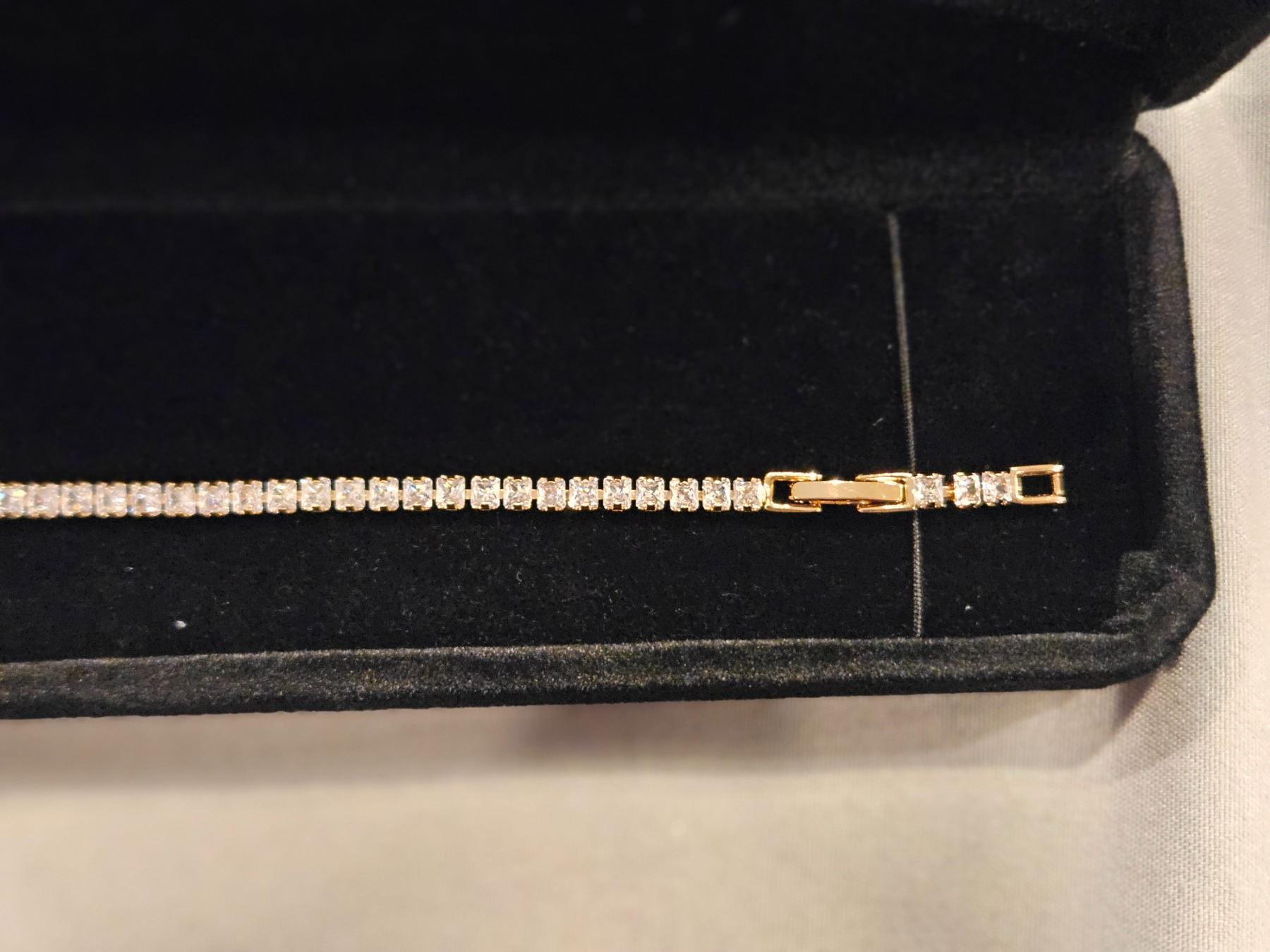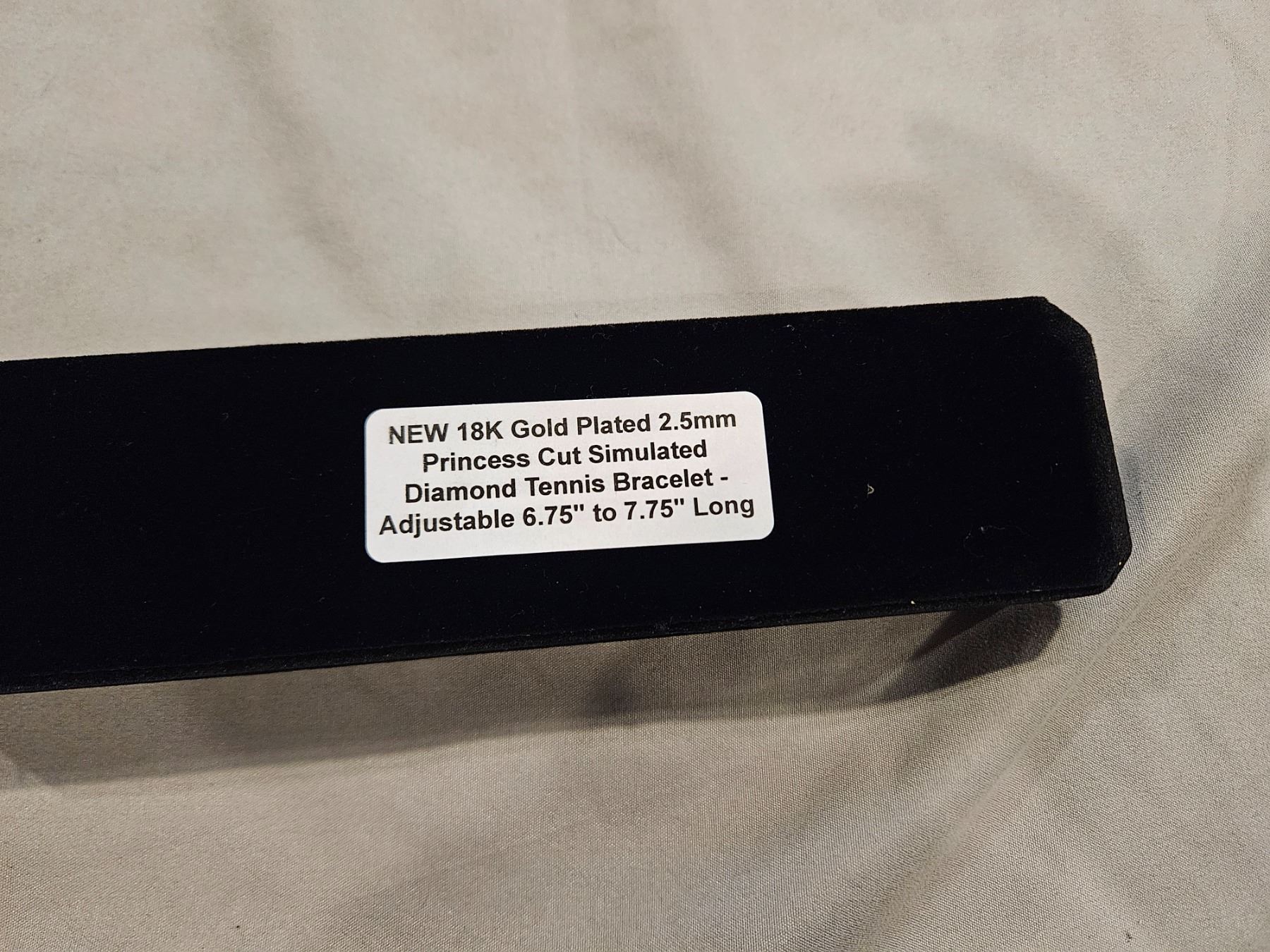 18K gold plated 2.5mm Princess cut simulated diamond tennis bracelet- adjustable 6.75-7.75" long