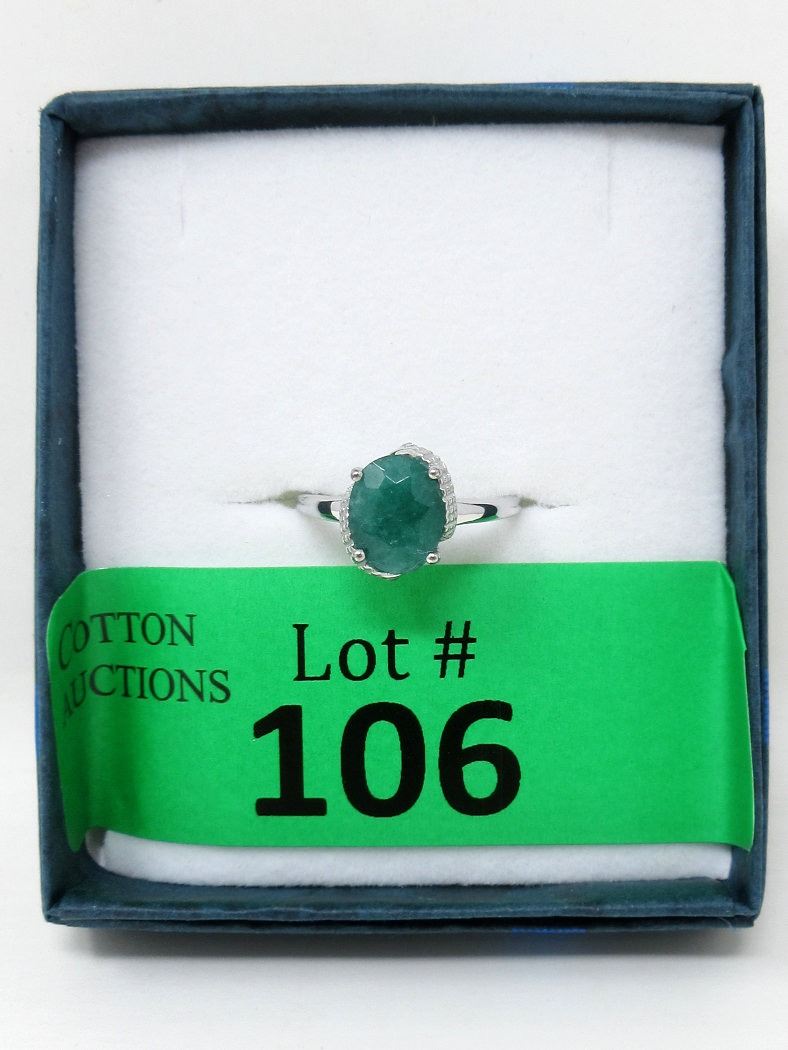 Oval cut emerald & 2 side diamonds. Includes $400 certificate.