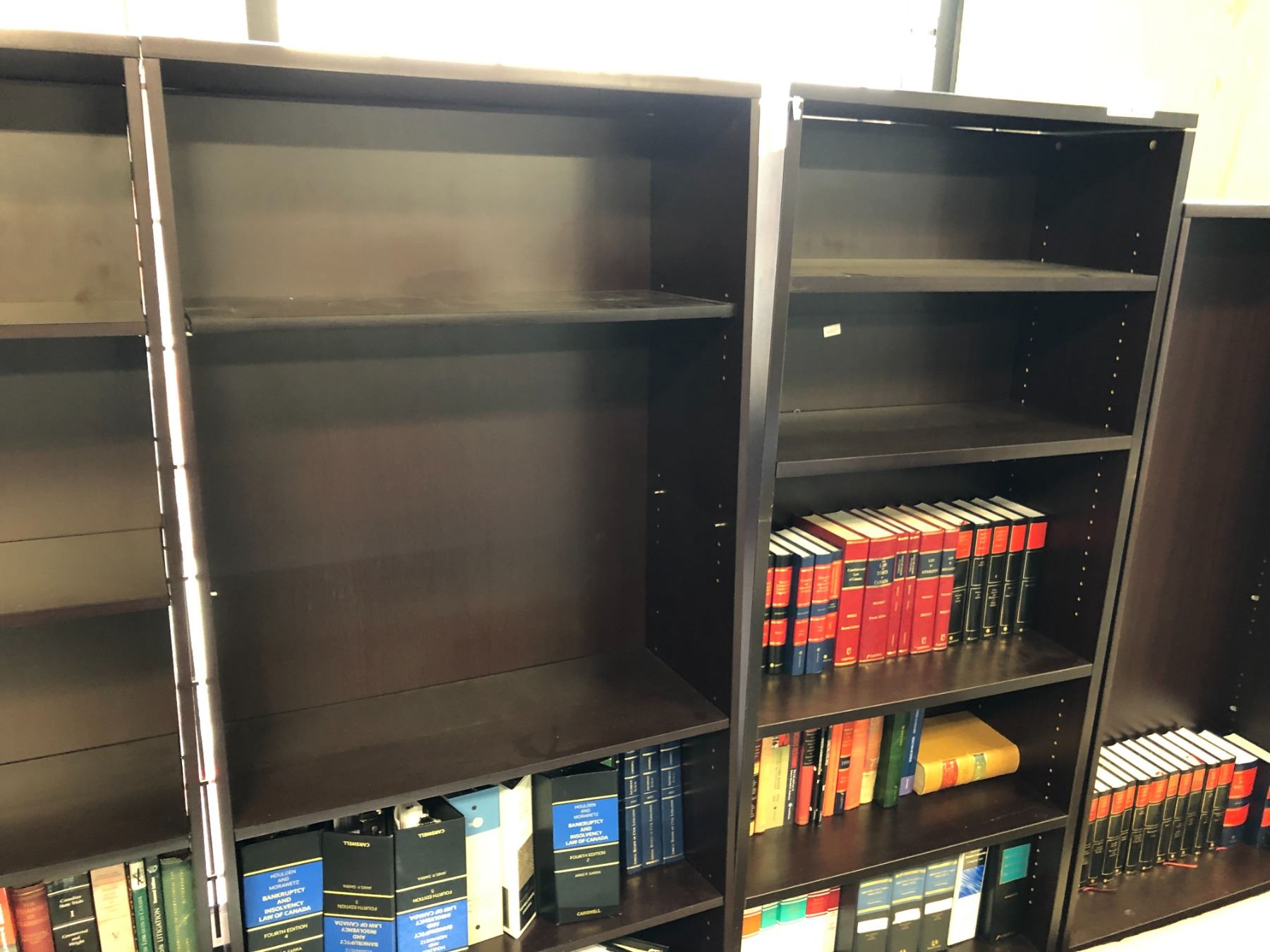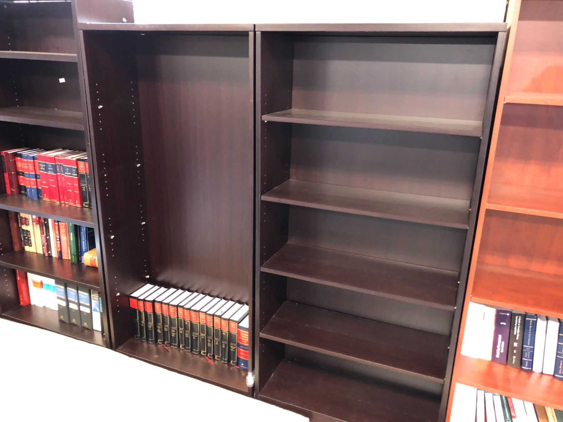 2 72"H AND 2 66"H DARK WOOD BOOK CASES (2 MISSING SHELVES)