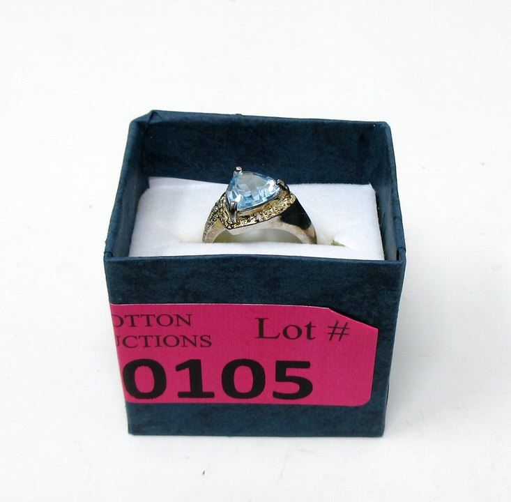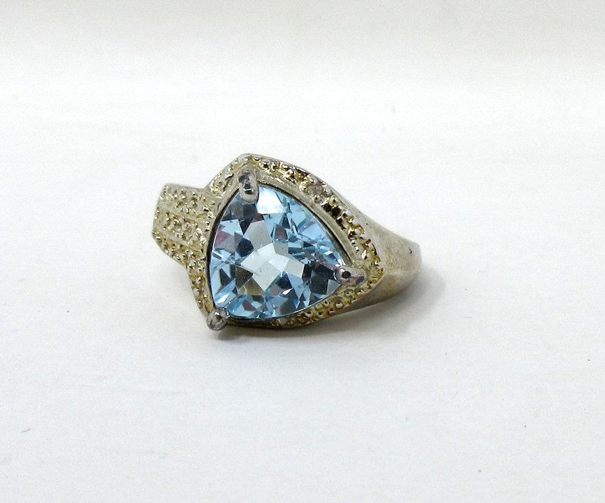Trillion cut topaz & 2 diamond set in sterling silver. Includes a $400 certificate.