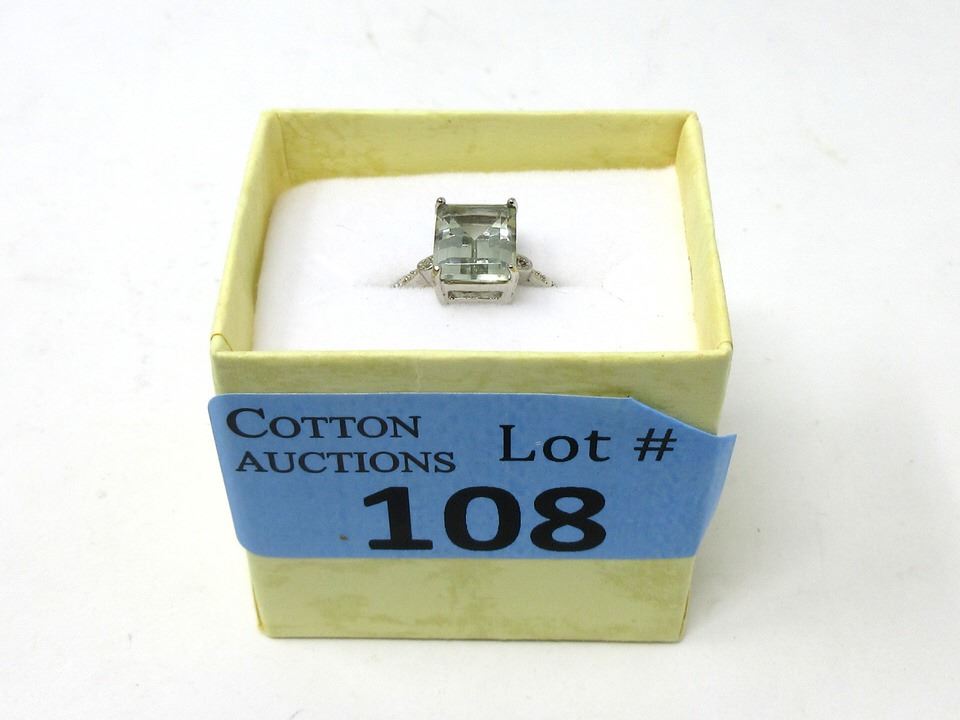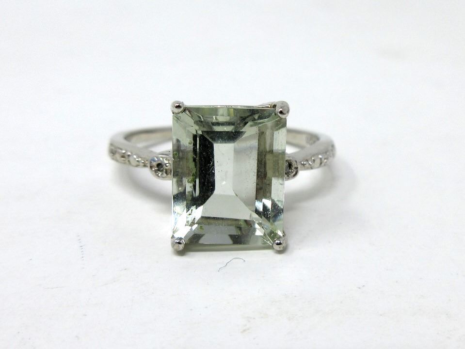 Emerald cut, VS clarity amethyst with 2 diamonds, set in sterling silver. Includes $350 certificate.