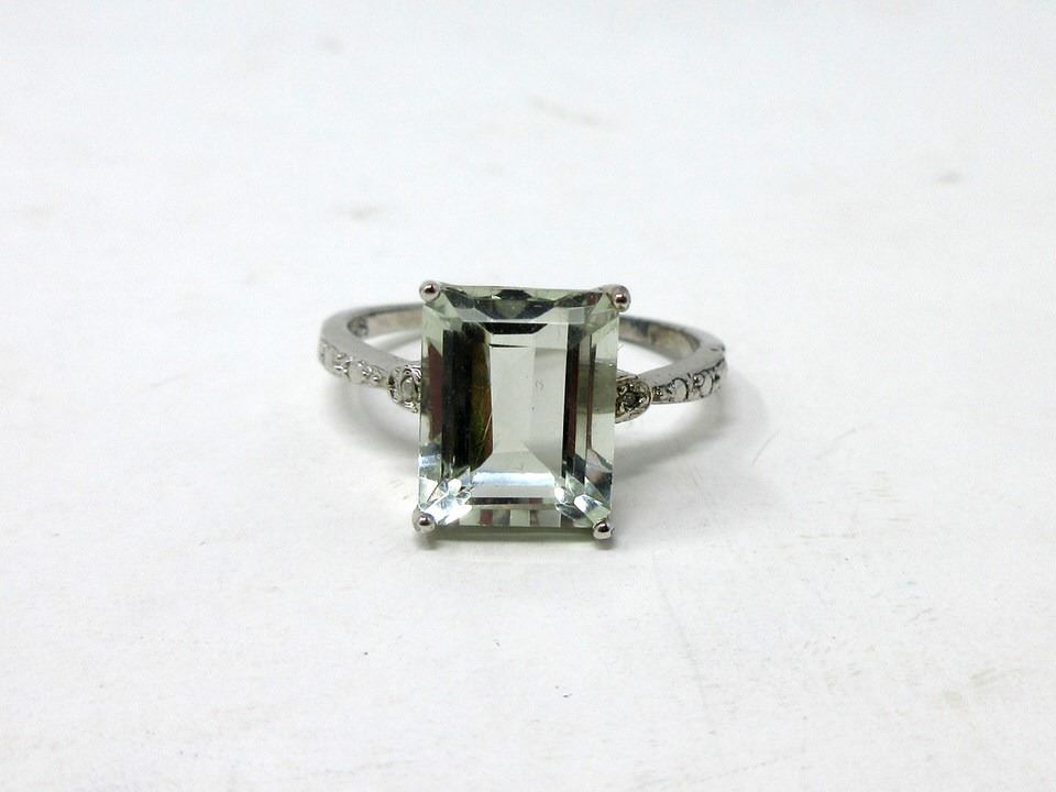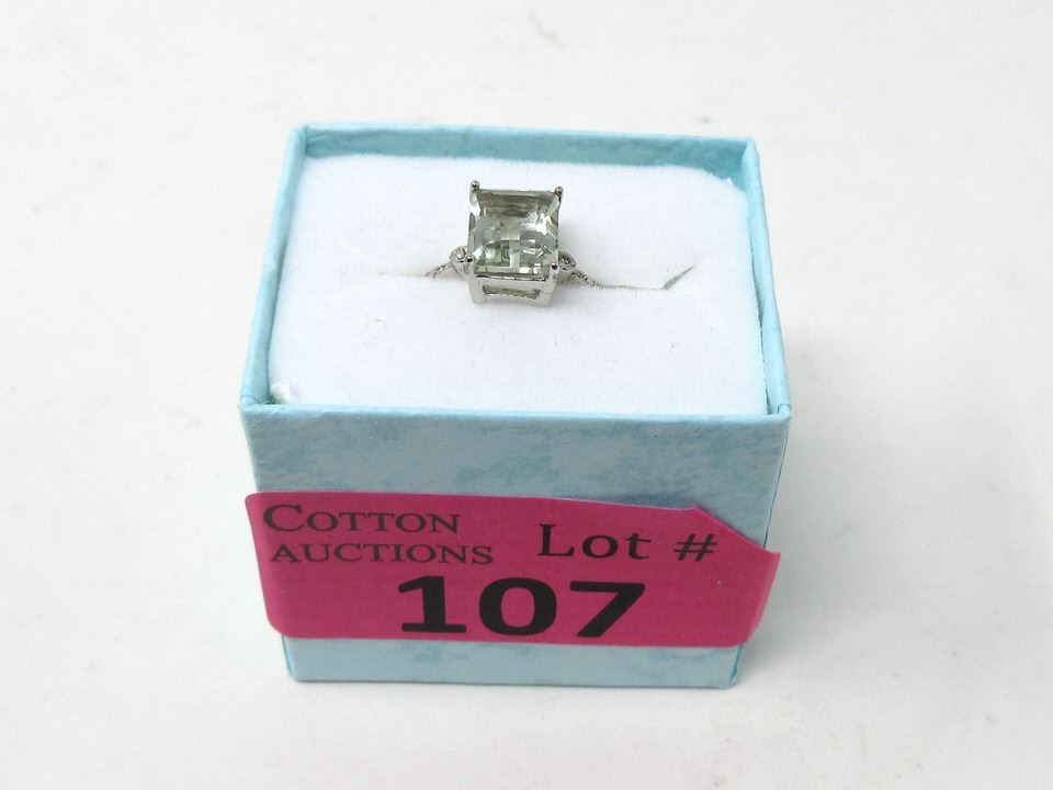 Emerald cut amethyst & 2 side diamonds in sterling silver. Includes $350 certificate.