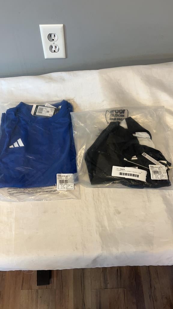 2 ADIDAS YOUTH JERSEY T-SHIRTS - SIZE MEDIUM AND LARGE